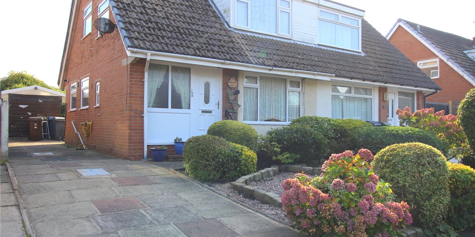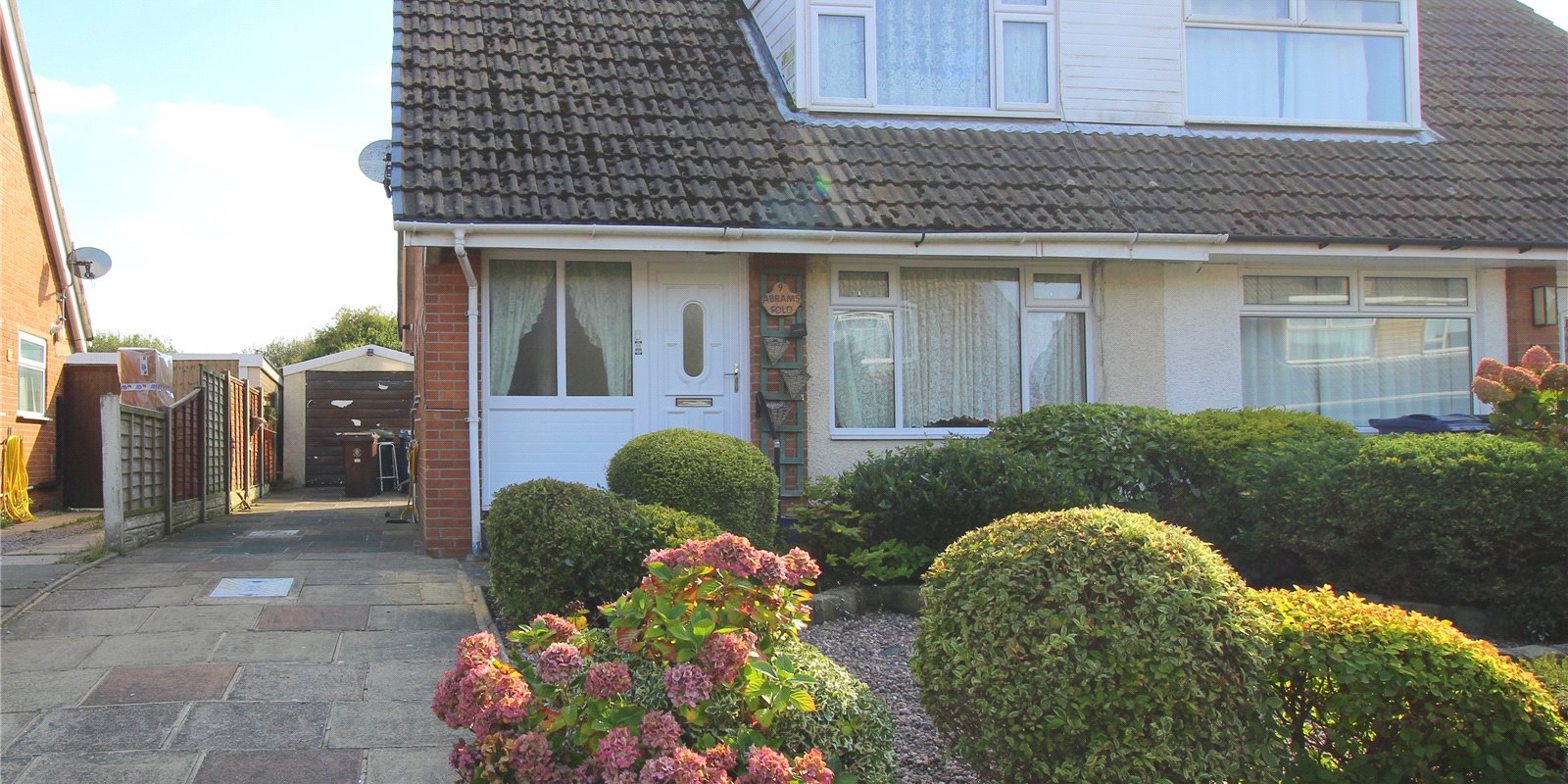To the front of the property is a paved driveway providing off street parking running the length of the property alongside a detached garage.