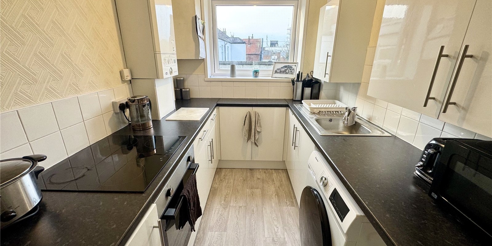 The well-appointed breakfast kitchen is fitted with a range of wall and base units, offering plenty of workspace and storage, and is ideal for both everyday cooking and entertaining. The large double bedroom is particularly impressive, comfortably accommodating bedroom furniture while retaining a bright and airy feel.