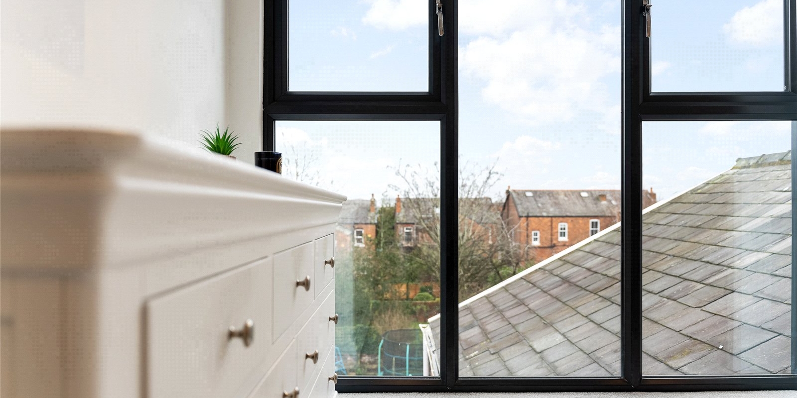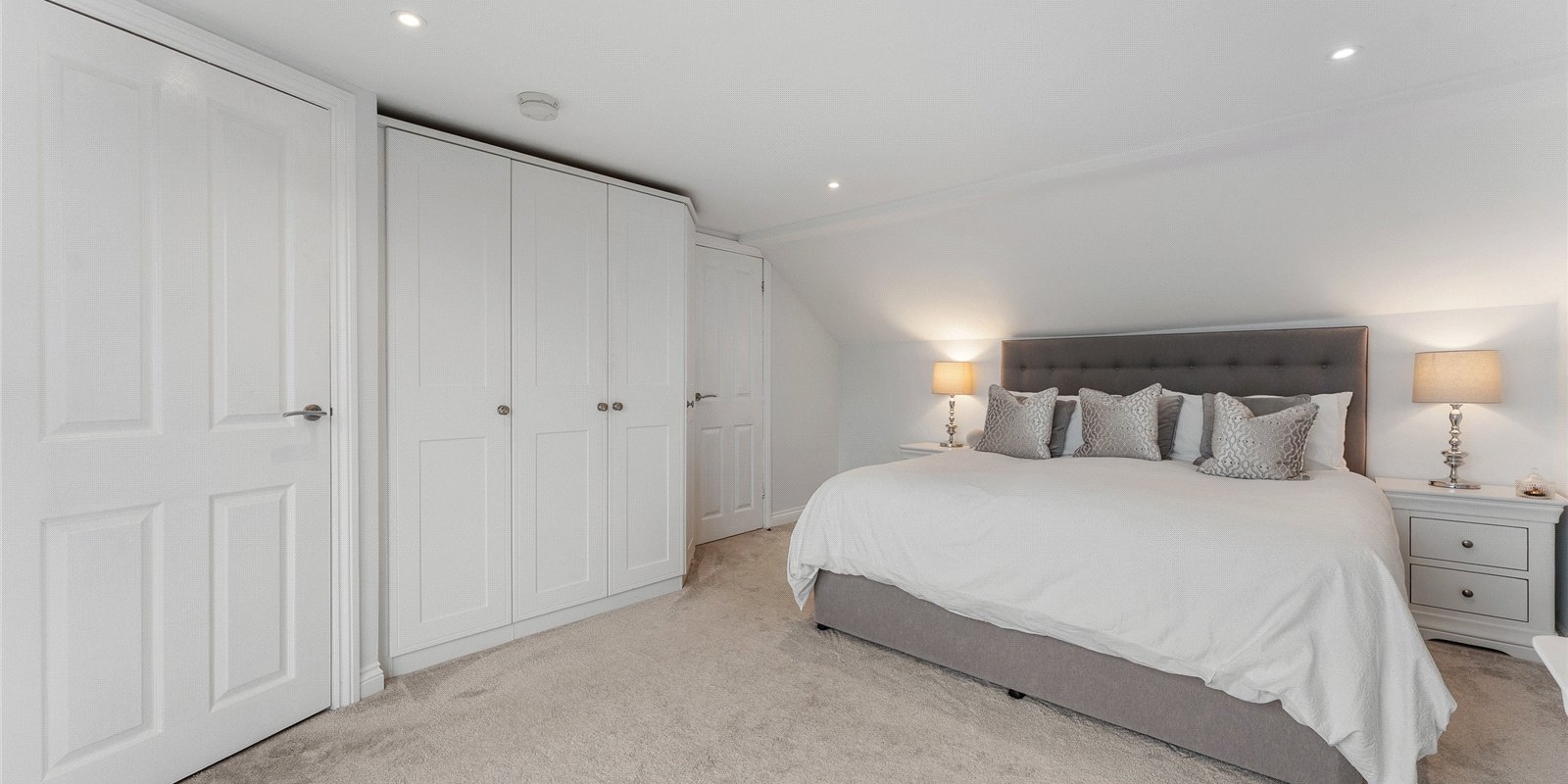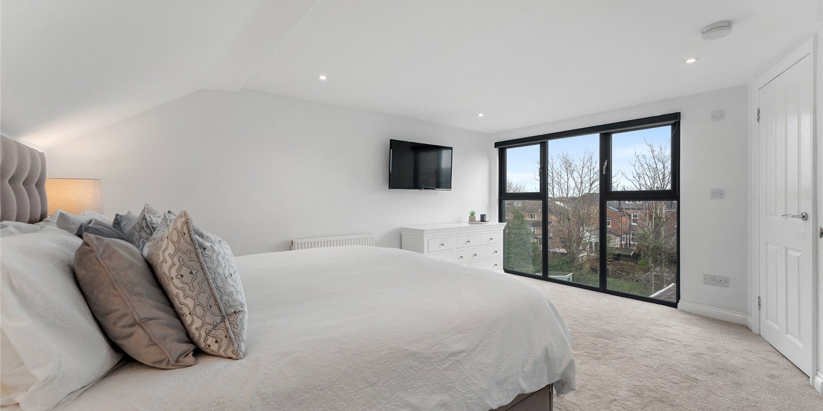 The property has been further enhanced by a loft conversion, now forming a spacious fourth bedroom. This impressive room features floor-to-ceiling windows that frame beautiful open views, flooding the space with natural light and creating a peaceful retreat. The bedroom also benefits from its own ensuite, making it ideal as a principal suite or guest bedroom.