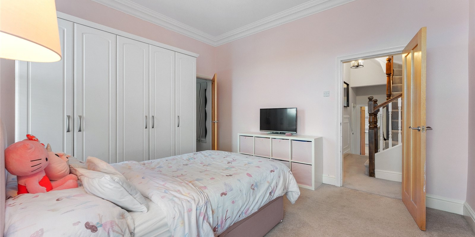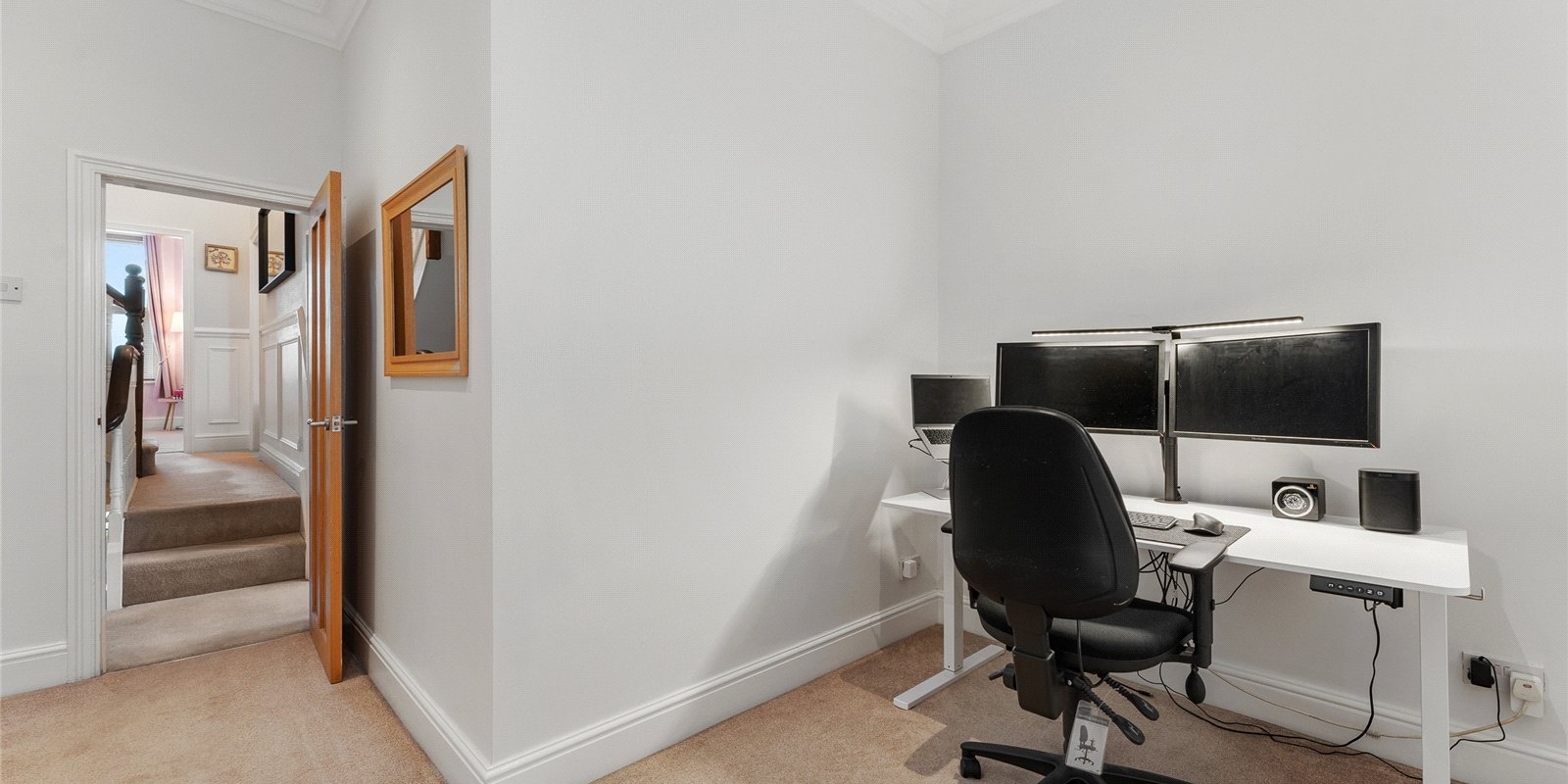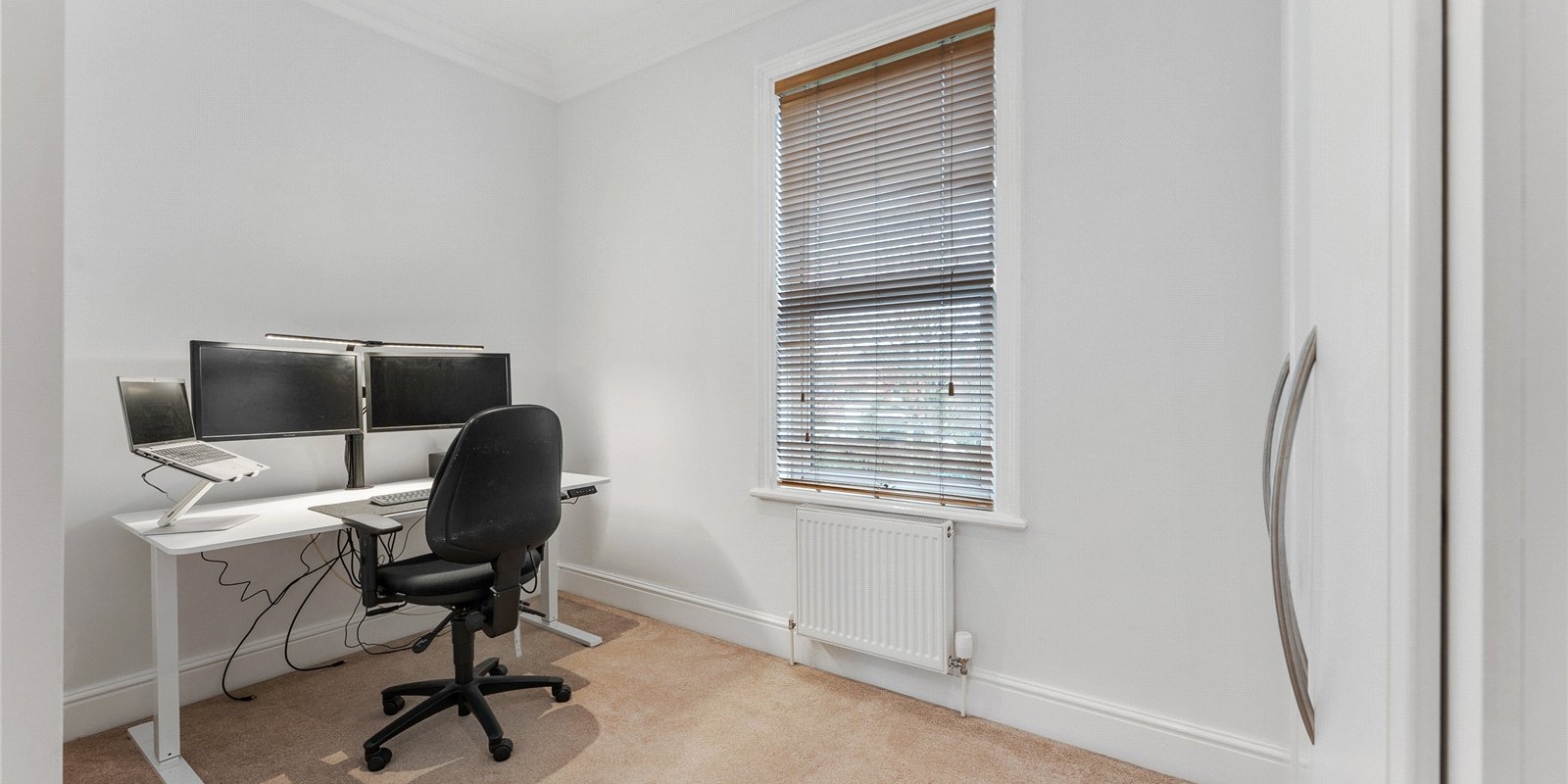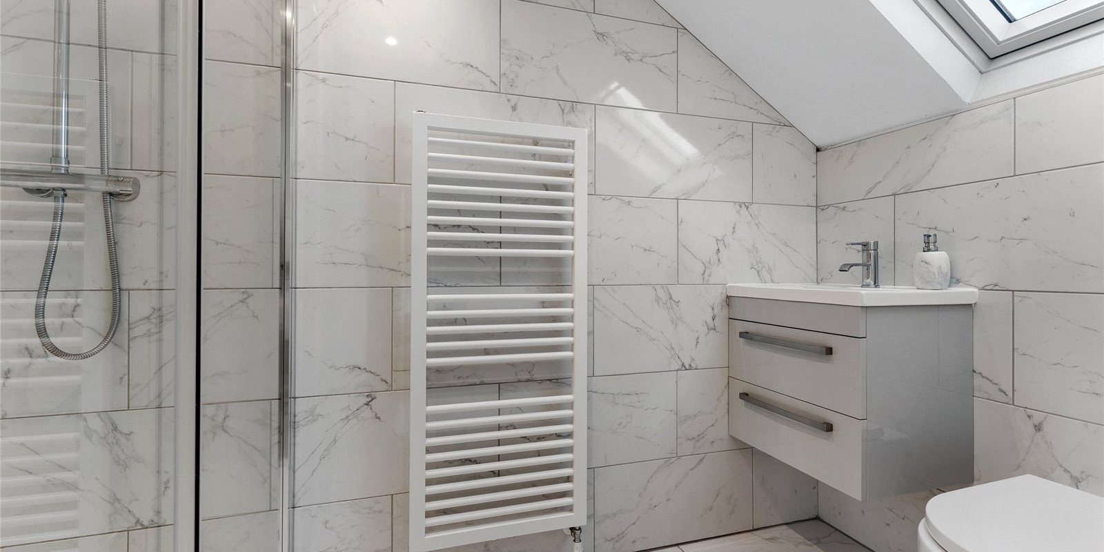 The property has been further enhanced by a loft conversion, now forming a spacious fourth bedroom. This impressive room features floor-to-ceiling windows that frame beautiful open views, flooding the space with natural light and creating a peaceful retreat. The bedroom also benefits from its own ensuite, making it ideal as a principal suite or guest bedroom.
