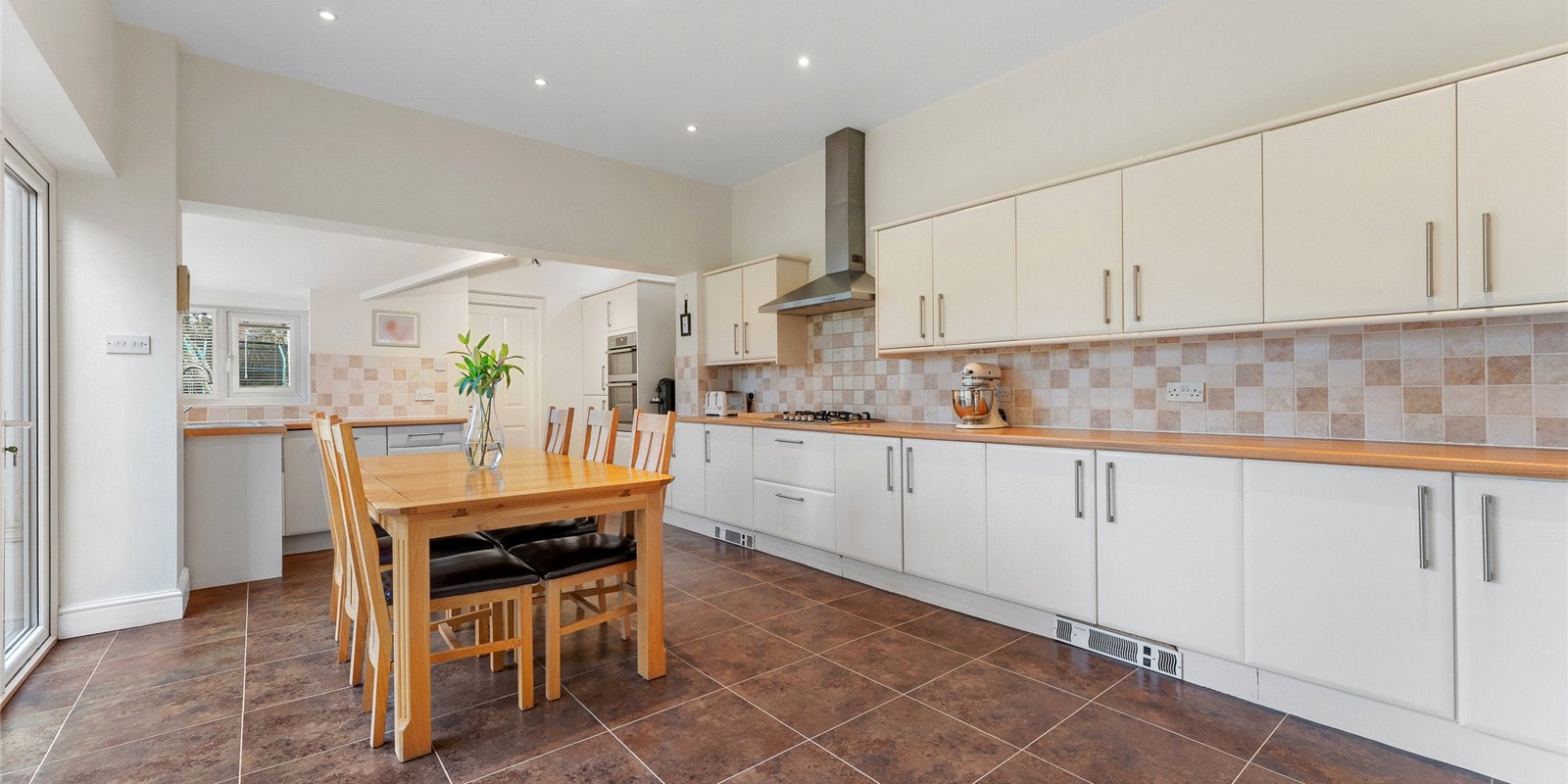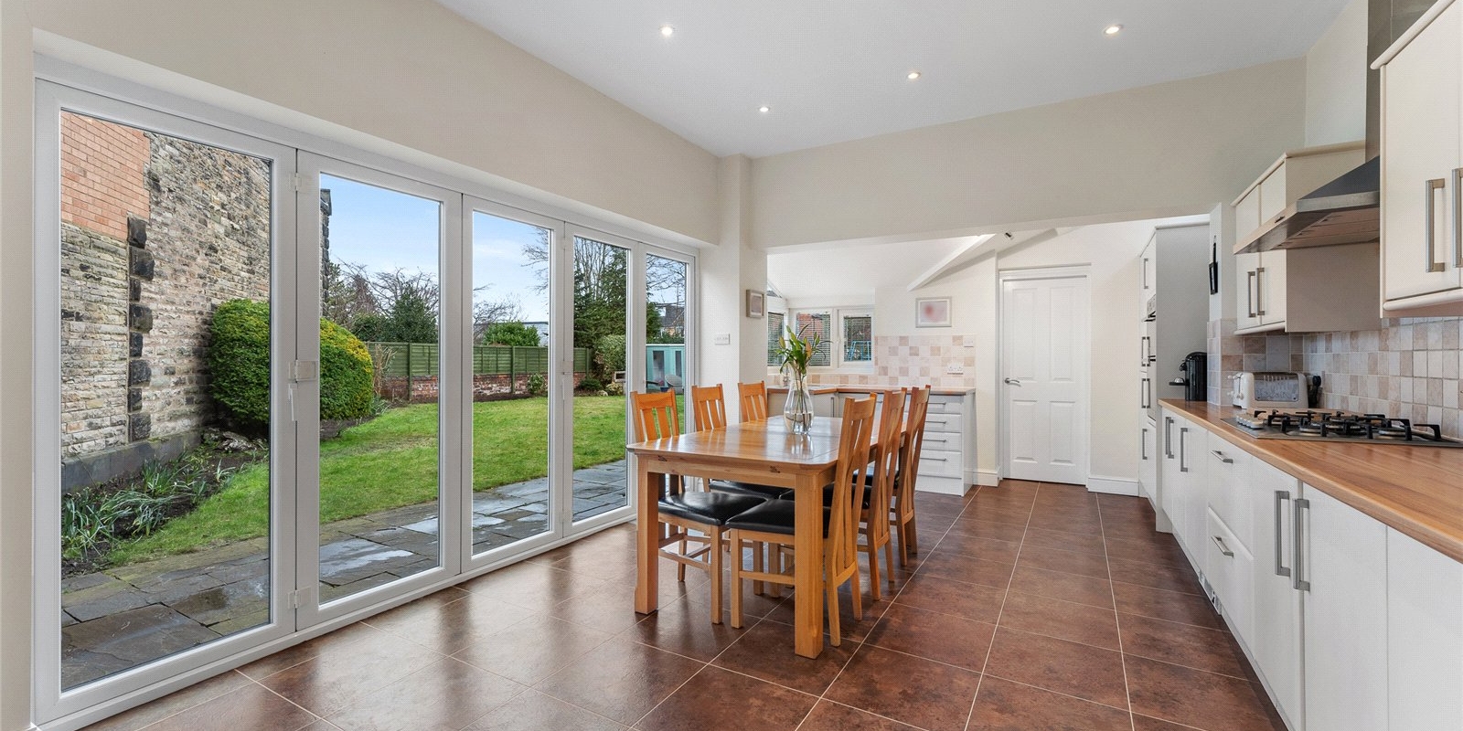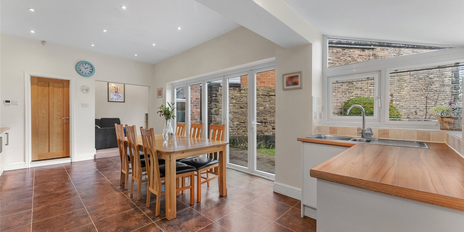 The ground floor offers two substantial reception rooms, providing flexible living and entertaining space. The principal reception room is warm and inviting, featuring a working fireplace that adds charm and character. The second reception room sits conveniently alongside the kitchen and opens into a bright dining area, creating an ideal hub for family life. Doors lead directly out to the garden, seamlessly connecting indoor and outdoor living.