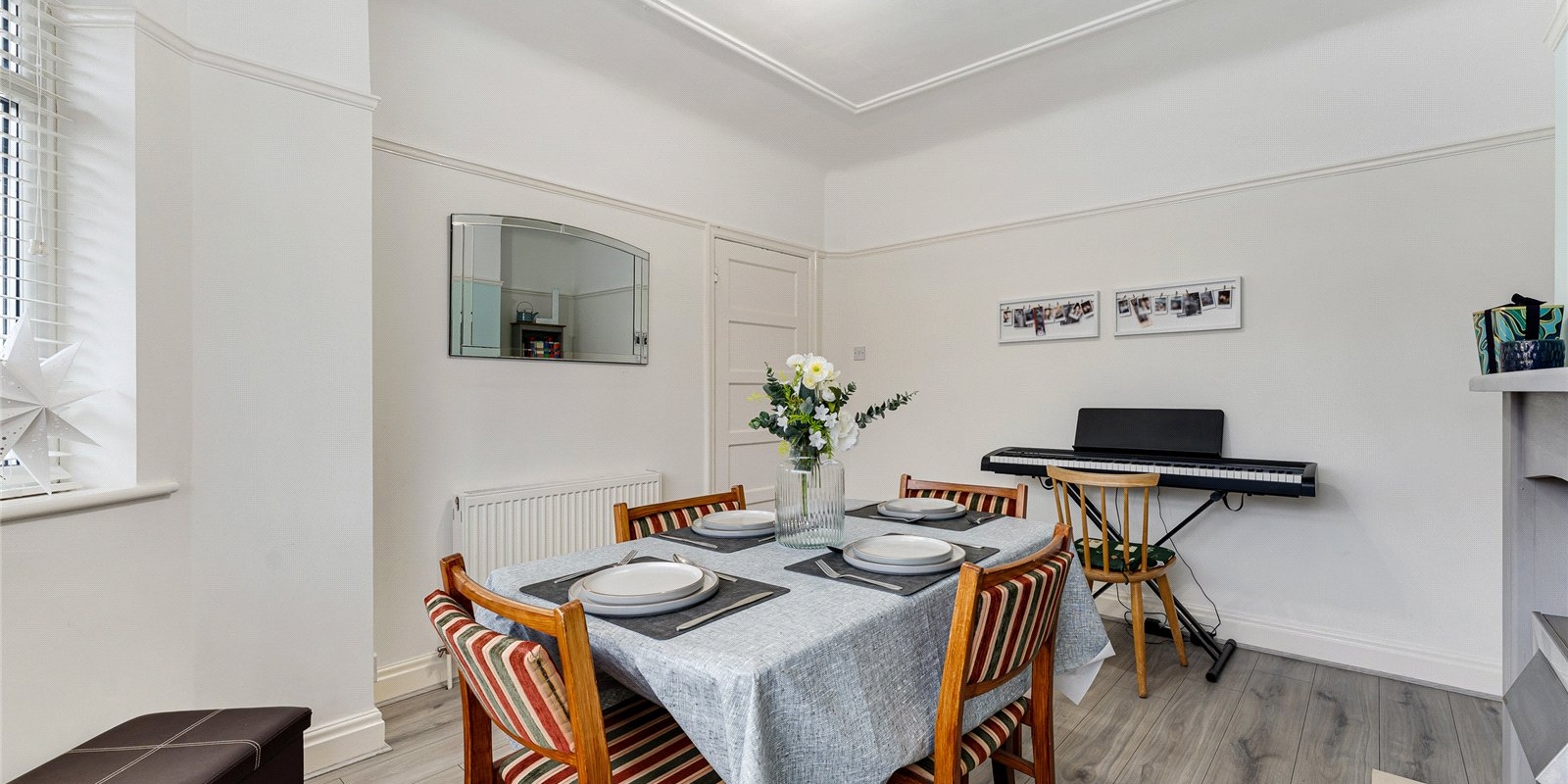 Inside, the property offers two spacious reception rooms. The front reception room features large windows that flood the room with light, creating an airy and welcoming space. This room is ideal for use as a formal dining area or a quiet study, depending on your lifestyle needs.