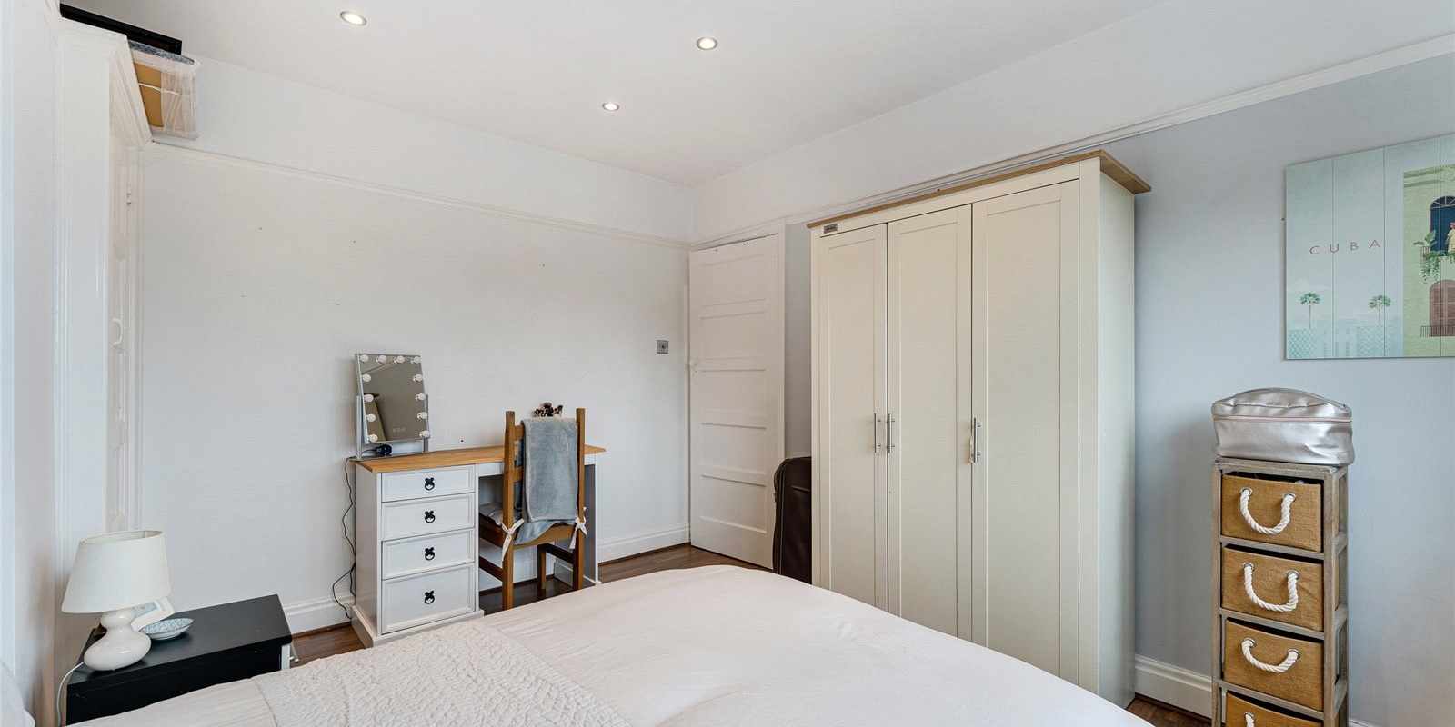 Upstairs, the property offers three well-proportioned bedrooms. The master bedroom is particularly spacious and benefits from a fitted wardrobe, providing valuable storage space without compromising on room size. All three bedrooms are filled with natural light and offer plenty of space for personalization.
