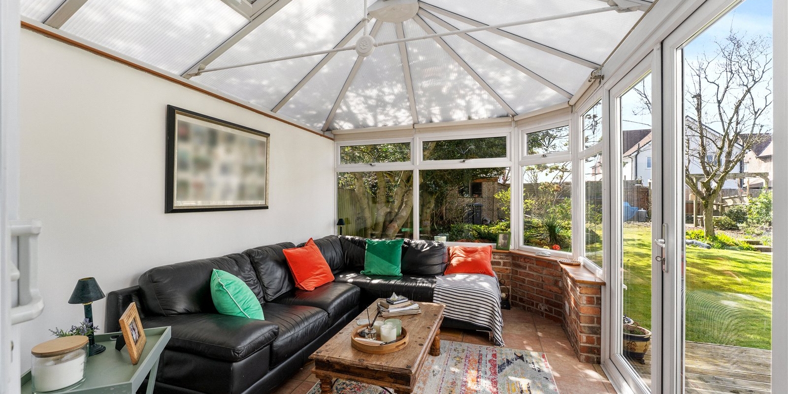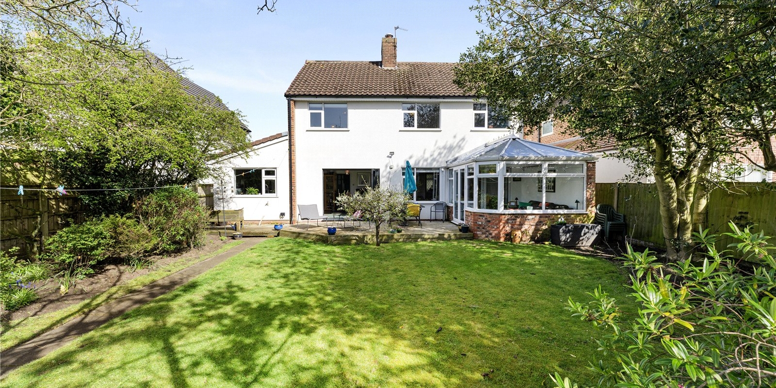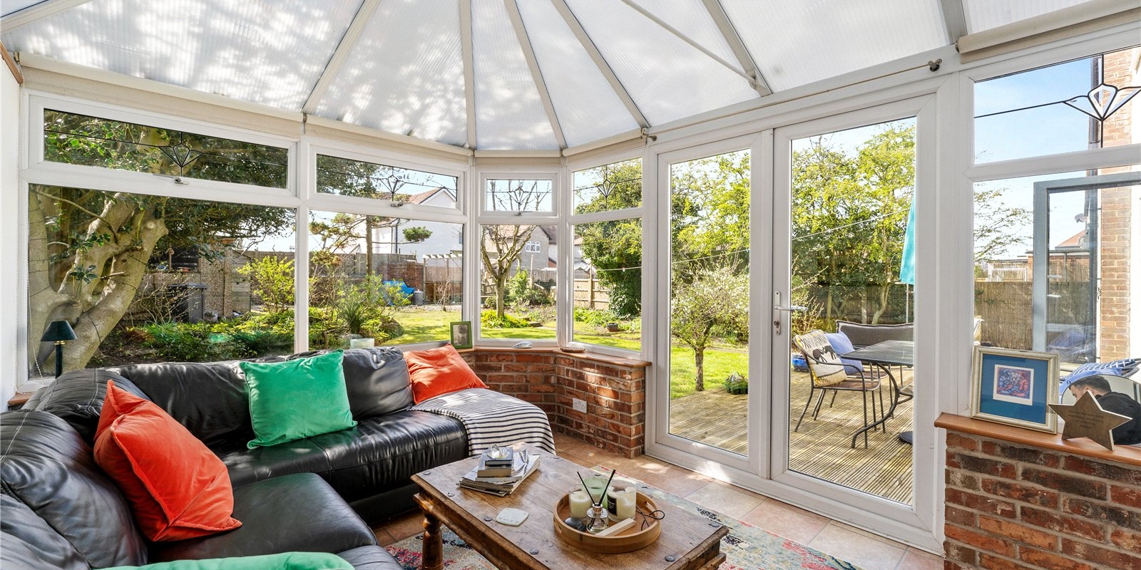 To the rear, a bright and airy conservatory offers yet another dimension to the living space. Overlooking the garden, it provides a light-filled setting that can be enjoyed year-round—perfect as a reading room, playroom, or informal sitting area.