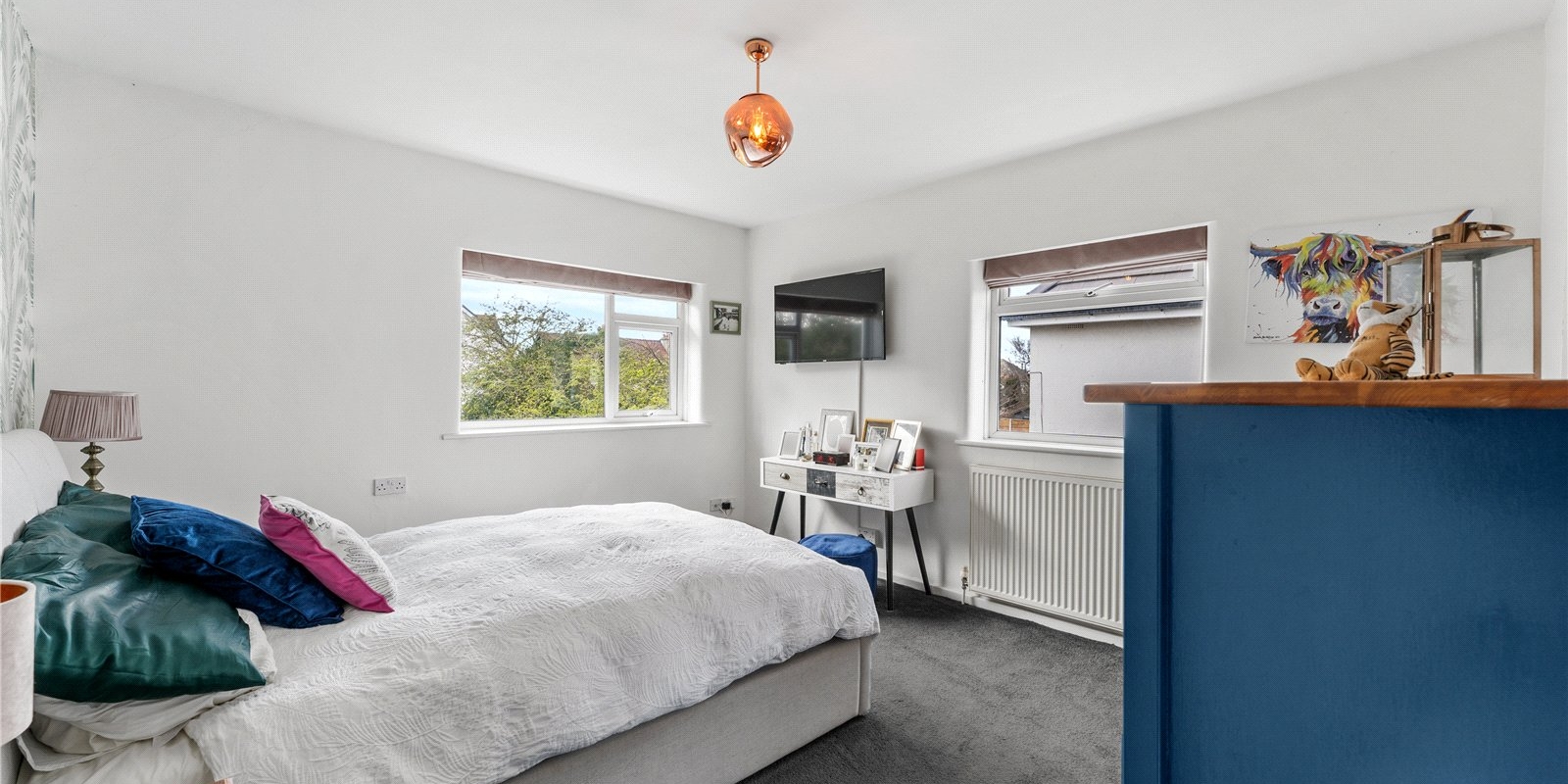Upstairs, the sense of space continues with a generous landing leading to three well-proportioned bedrooms. The impressive principal bedroom serves as a true retreat, complete with a stylish en-suite bathroom featuring a contemporary walk-in shower. The remaining bedrooms are all spacious and versatile, easily accommodating family living, guest use, or additional workspace if required.