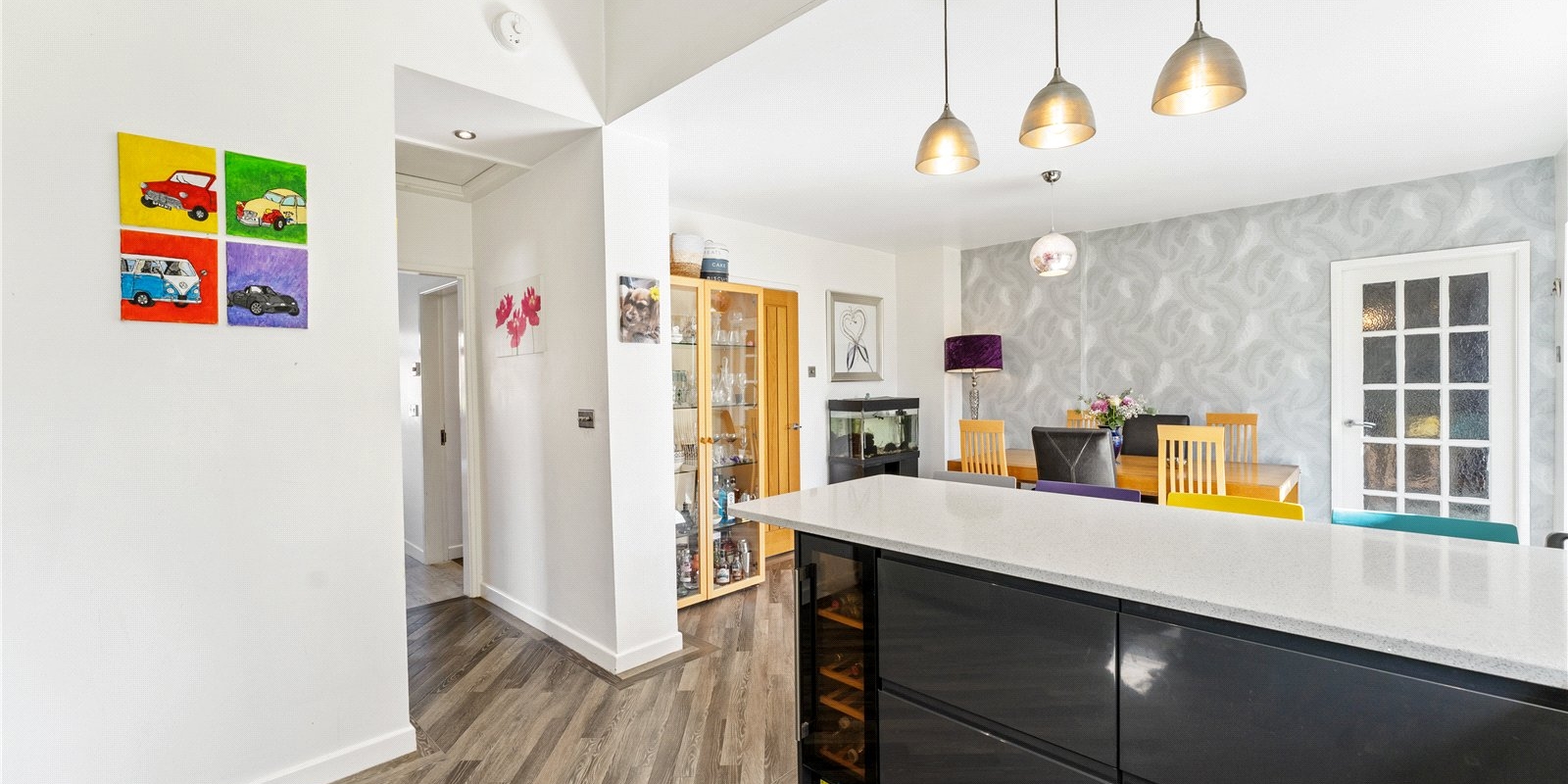 From the moment you enter, the sense of space is immediately apparent. The welcoming entrance hallway leads to a beautifully presented front reception room, complete with a feature fireplace, creating a warm and inviting space ideal for relaxing evenings.