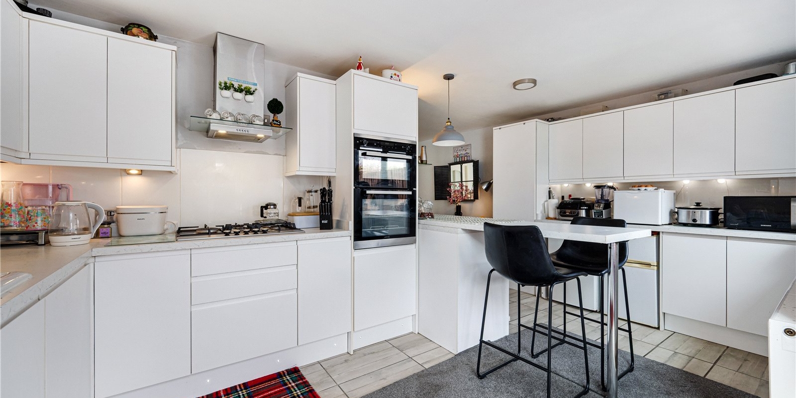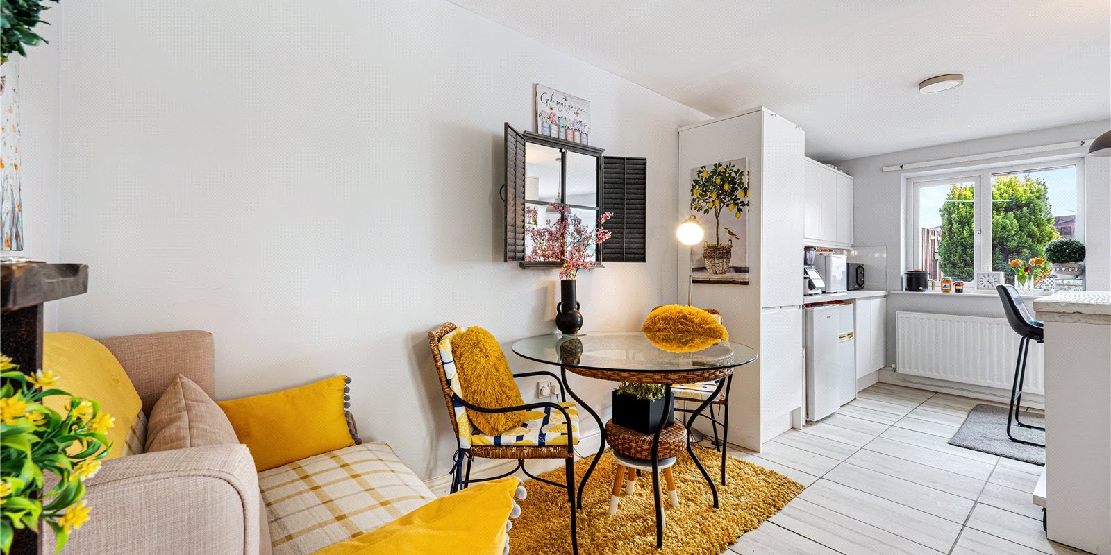 Inside, the home features a bright and airy open-plan sitting room, enhanced by a stylish roof lantern that floods the space with natural light, creating a warm and inviting atmosphere. The neutral kitchen complements the open layout, offering a clean and contemporary feel ideal for both everyday living and entertaining.