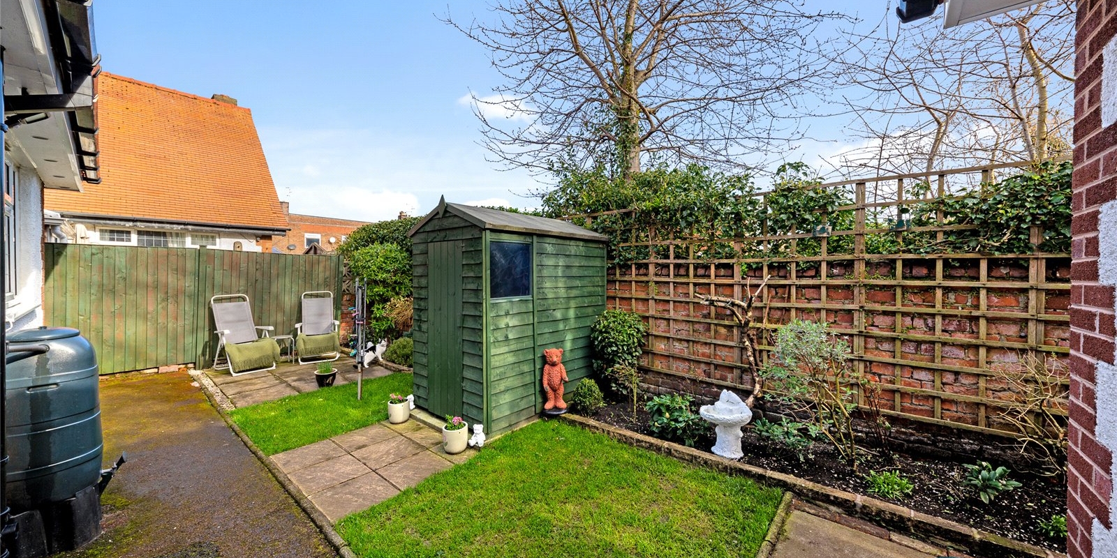 Externally, the property continues to impress. To the front, it is set back from the road, enhancing privacy and security, with ample space for off-road parking and potential for a garage (subject to planning). To the rear, you will find a well-maintained garden, featuring a combination of lawn, patio seating areas, and established planting – perfect for enjoying outdoor living.