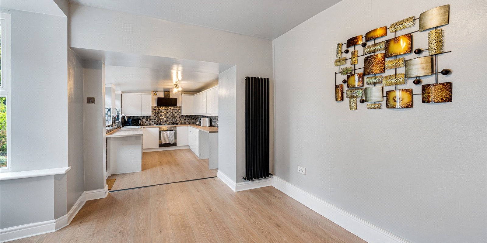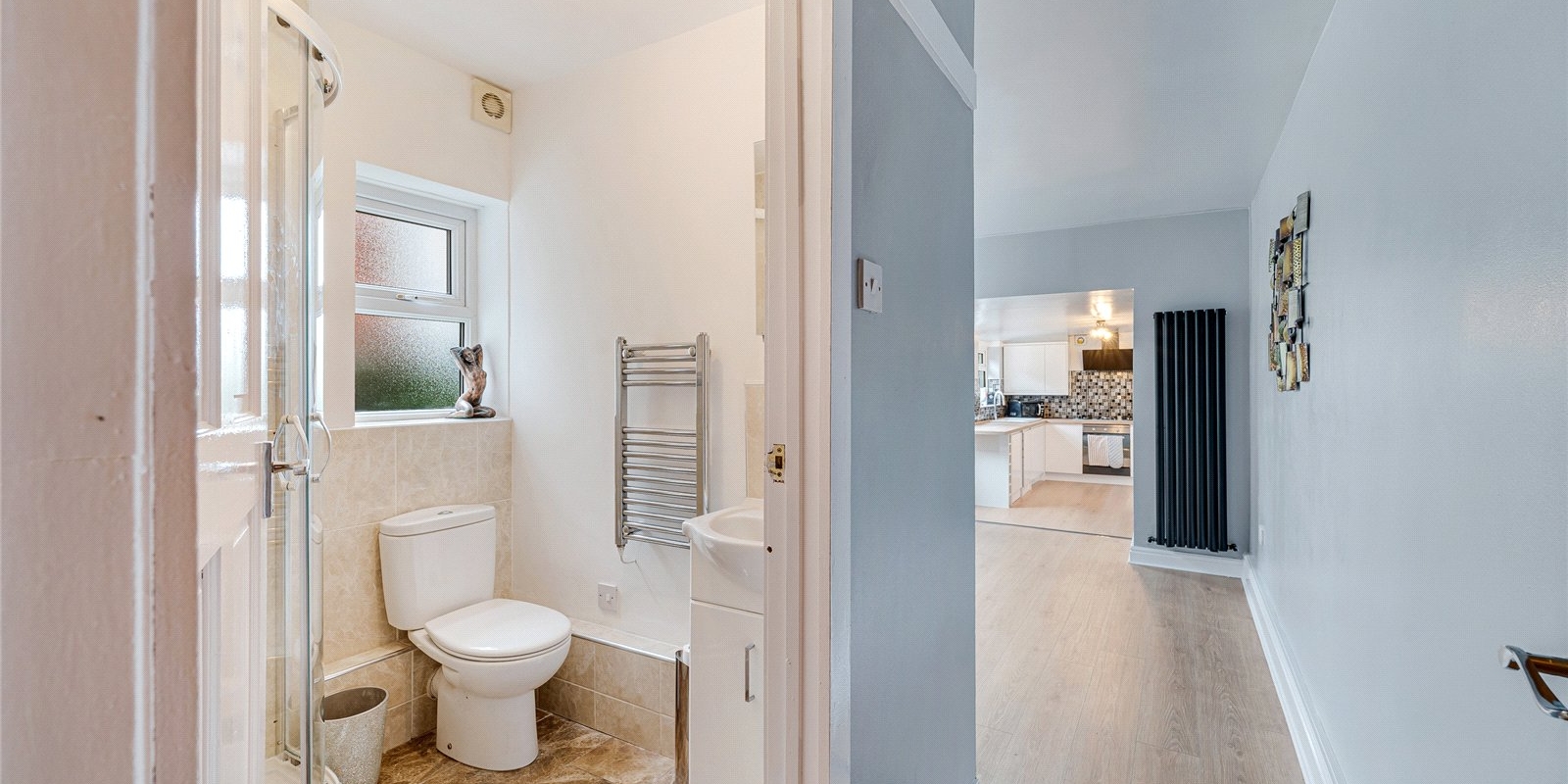 The home has been freshly painted throughout, complementing the natural wooden floors that flow seamlessly from room to room. The newly fitted kitchen is a real highlight, with sleek, modern cabinetry and a step-down design that adds a touch of style. Natural light pours in, creating a welcoming atmosphere that's perfect for both everyday meals and special occasions. The downstairs shower room features a contemporary walk-in shower, offering convenience and comfort.