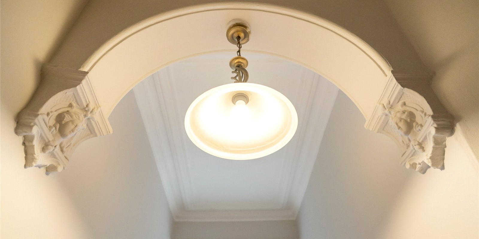 As you step inside, you're greeted by the high ceilings and beautiful stained-glass windows in the hallway, setting the tone for the rest of the property. The two reception rooms have been cleverly combined into one large, open-plan area, creating a bright and airy space, ideal for entertaining or relaxing with the family. The room is enhanced by elegant fireplaces, adding warmth and character to the space.