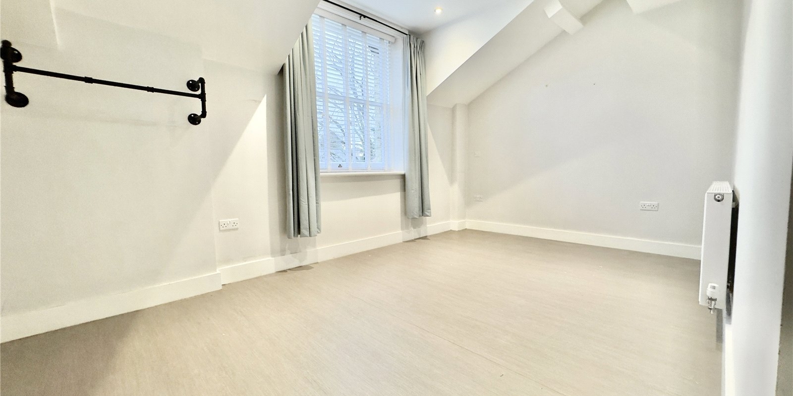 Both bedrooms are well proportioned, with the principal bedroom offering a particularly spacious footprint. The second bedroom is equally versatile and can function as a guest room, home office or nursery, depending on the buyer’s needs. A modern bathroom sits off the hallway, finished in a clean, neutral style that will appeal to a wide range of tastes.