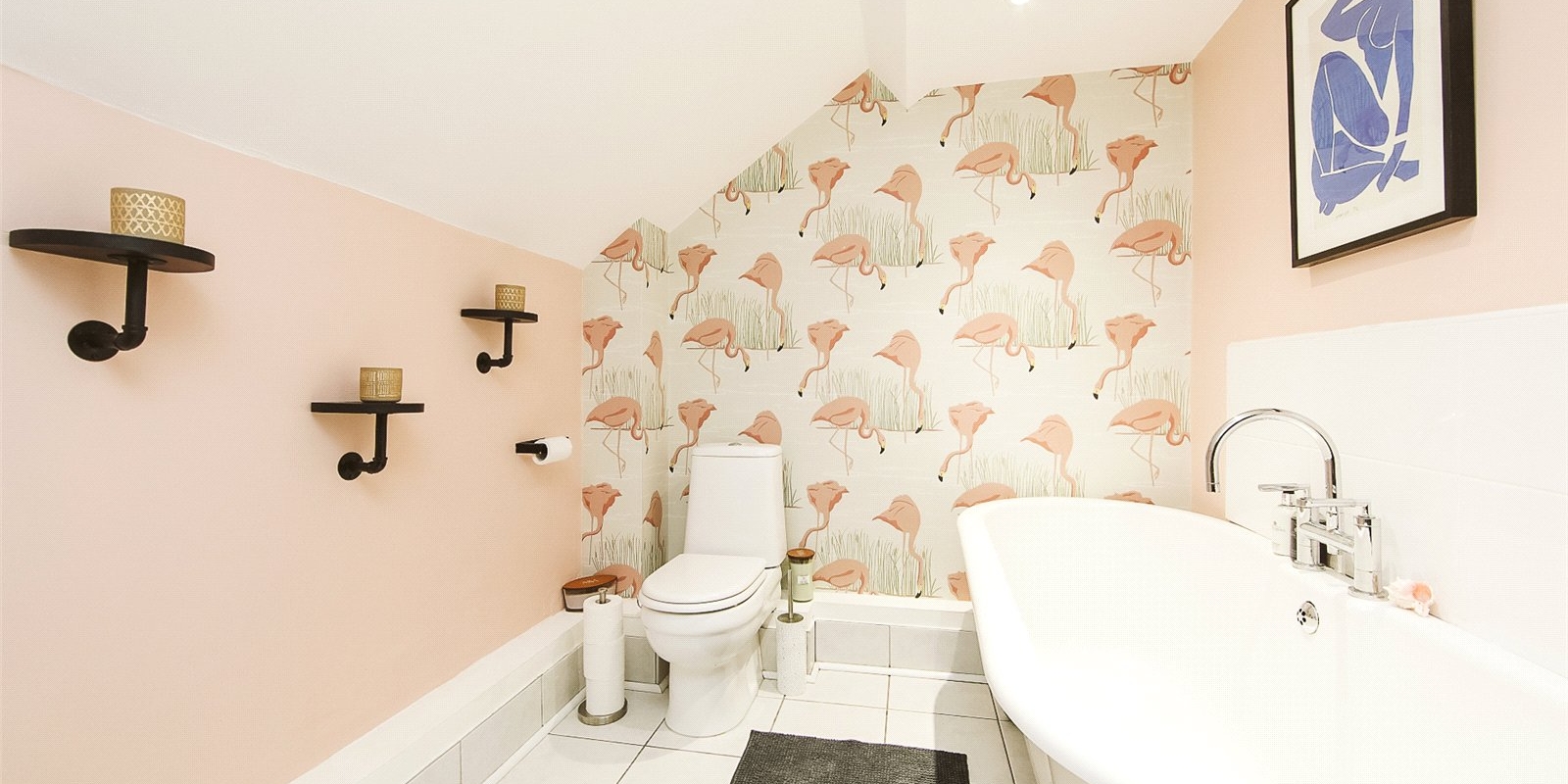 A standout feature of this property is the main bathroom—stylish and serene, it features a freestanding roll-top bath, tasteful décor, and high-quality finishes that elevate the space into a luxurious sanctuary.