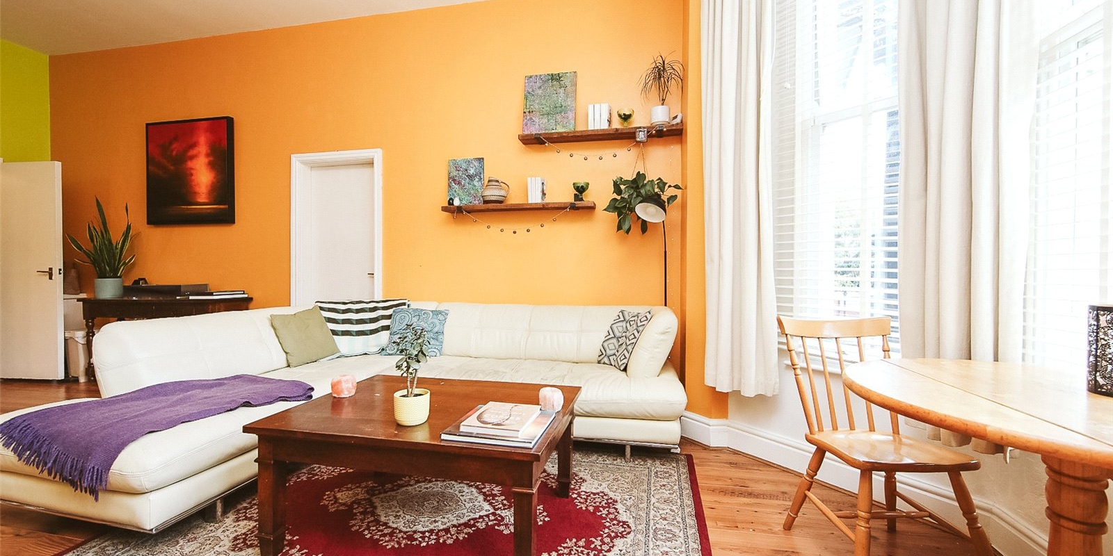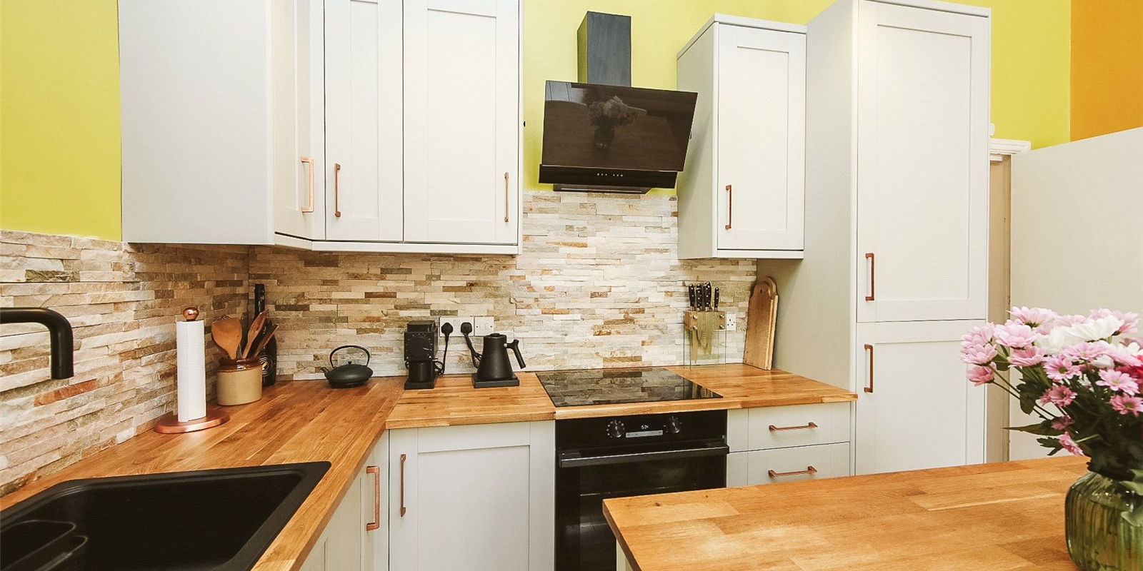 Step into a bright and spacious open-plan kitchen and dining area, flooded with natural light thanks to large bay windows. The newly fitted kitchen is a standout feature—elegantly designed with modern integrated appliances, wooden countertops, and sleek cabinetry, offering both functionality and a contemporary aesthetic. It’s the perfect space for cooking, dining, and entertaining.