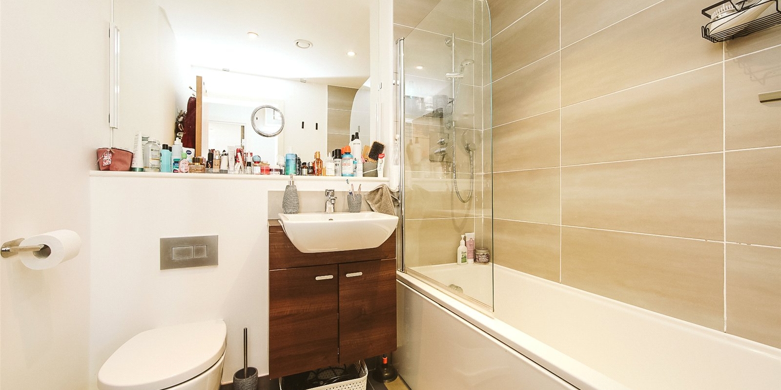 The highlight of the apartment is the generously sized bathroom, featuring a high-spec finish with a full-size bathtub, separate shower enclosure, and elegant tiling — a rare find in city living. The double bedroom is bright and spacious with fitted storage, while additional hallway storage helps keep the space clutter-free and practical.