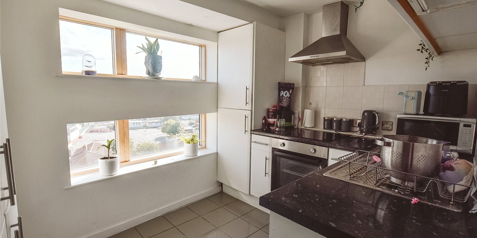 Positioned within a prestigious development, the apartment boasts a contemporary layout spread across two floors, designed to maximise both space and natural light. The upper floor features an expansive open-plan living, dining, and kitchen area, fully fitted with high-quality appliances and stylish finishes. Floor-to-ceiling windows and sliding glass doors open onto a private, newly decked balcony, providing spectacular panoramic views across Liverpool’s dynamic cityscape—an ideal spot for entertaining or relaxing.