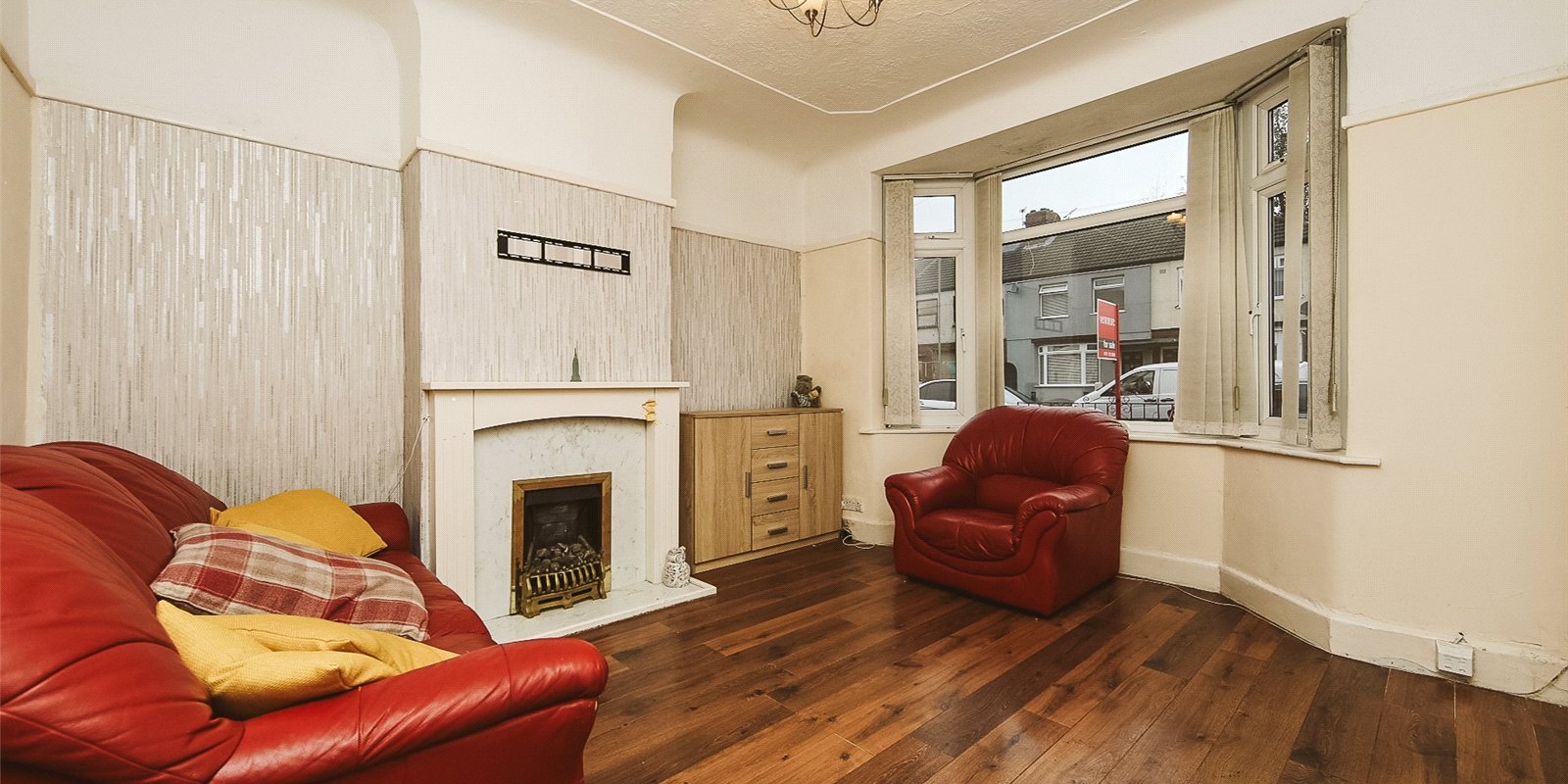 As you step inside, you are greeted by a bright and welcoming lounge featuring a large bay window that floods the room with natural light. The tasteful laminate flooring and neutral décor create a warm and comfortable setting for family relaxation or entertaining guests.