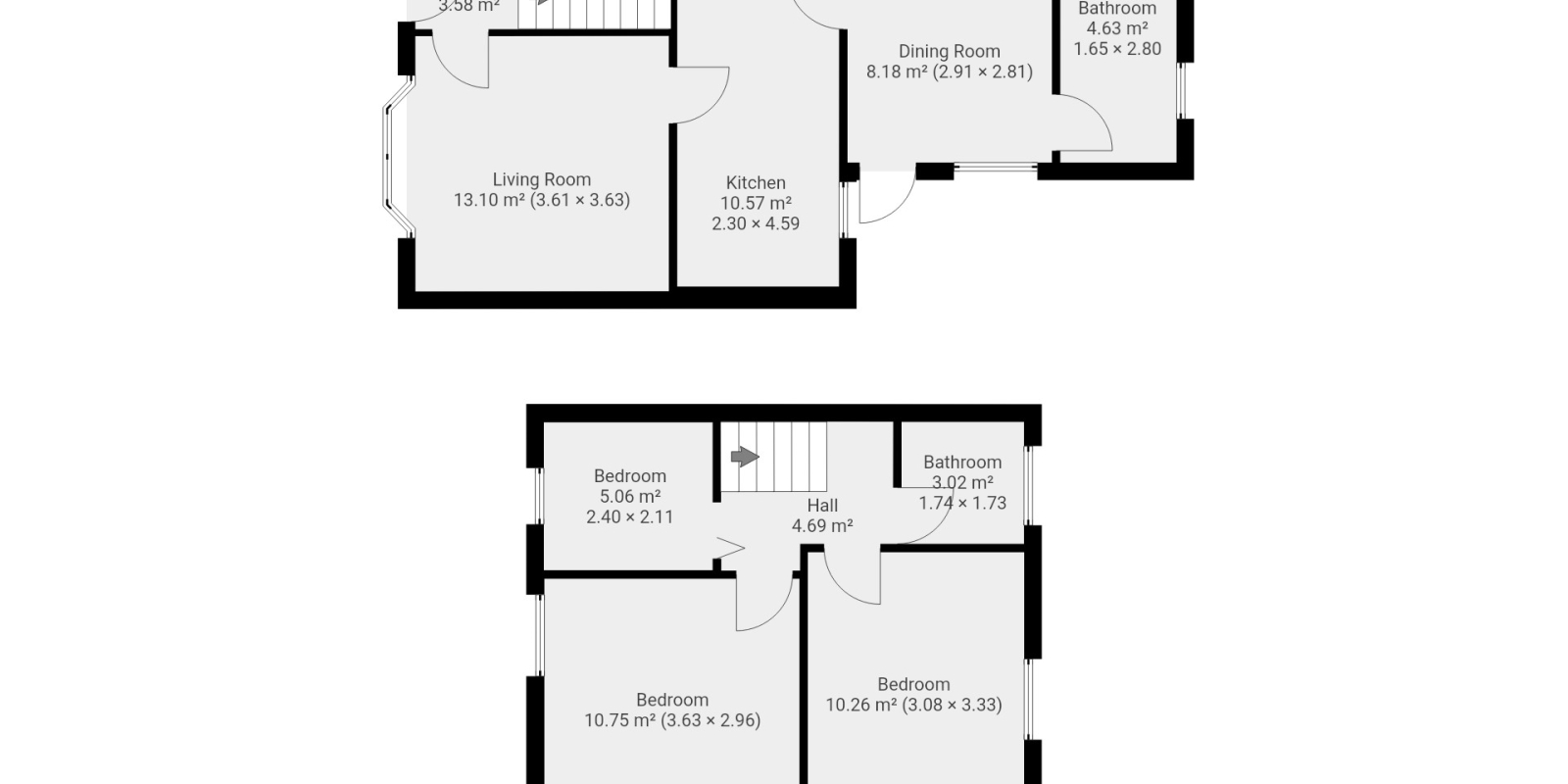 Upstairs, there are three well-proportioned bedrooms. The family bathroom is fitted with a bath, wash hand basin, and WC, finished with part-tiled walls for easy maintenance.
