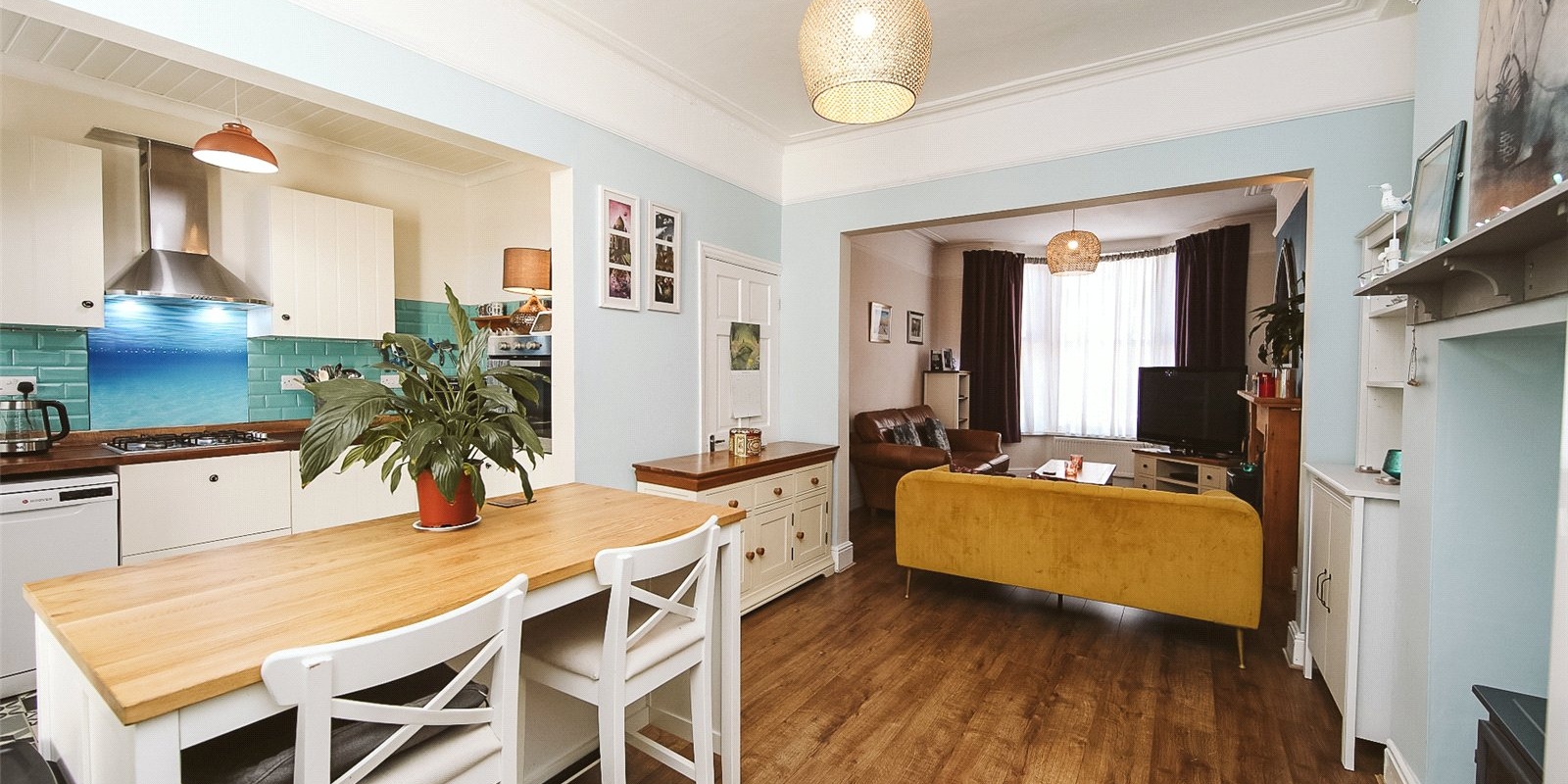 A connecting door from the dining room leads to a small utility area and separate downstairs WC which adds convenience for guests and busy family life. The back door leads from this area into a spacious back yard which includes a 2m x 1m wooden shed