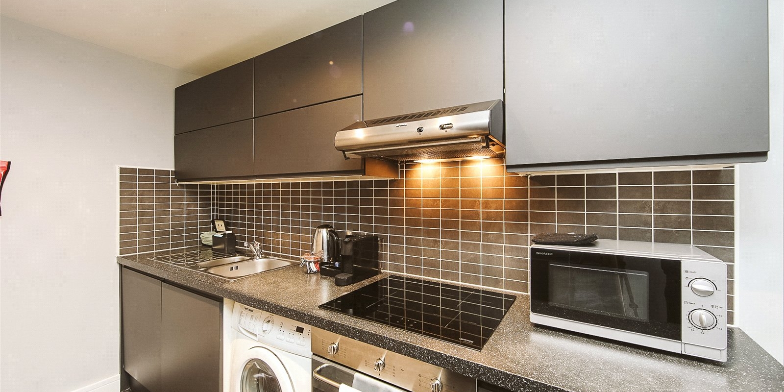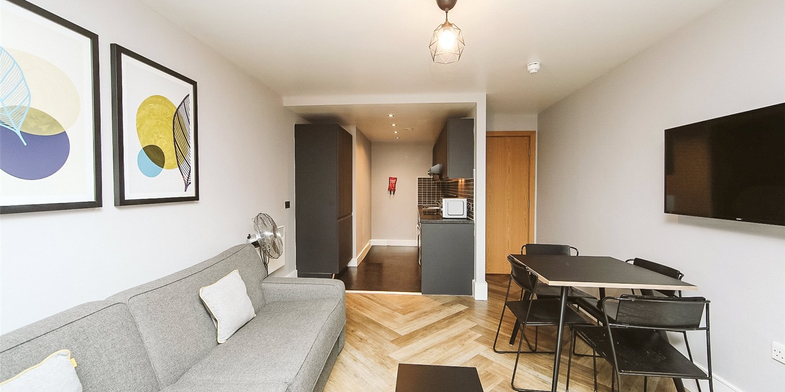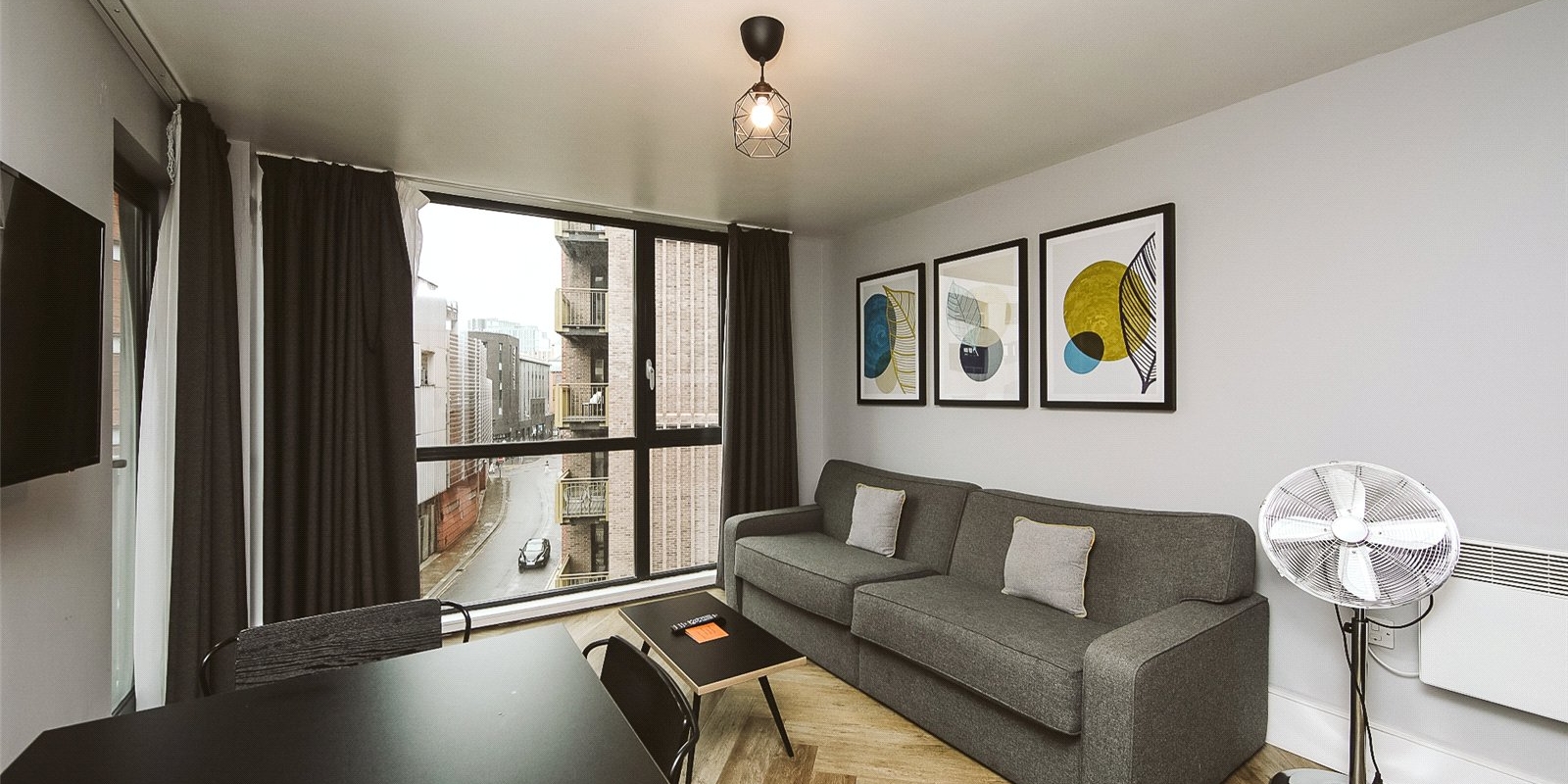 Located in the heart of Liverpool City Centre, this stylish one-bedroom flat offers modern urban living just moments from Liverpool One and Central Station. Situated on the upper floor of a secure development, the property features a bright open-plan living space with floor-to-ceiling windows, a contemporary kitchen, and a partitioned bedroom area.