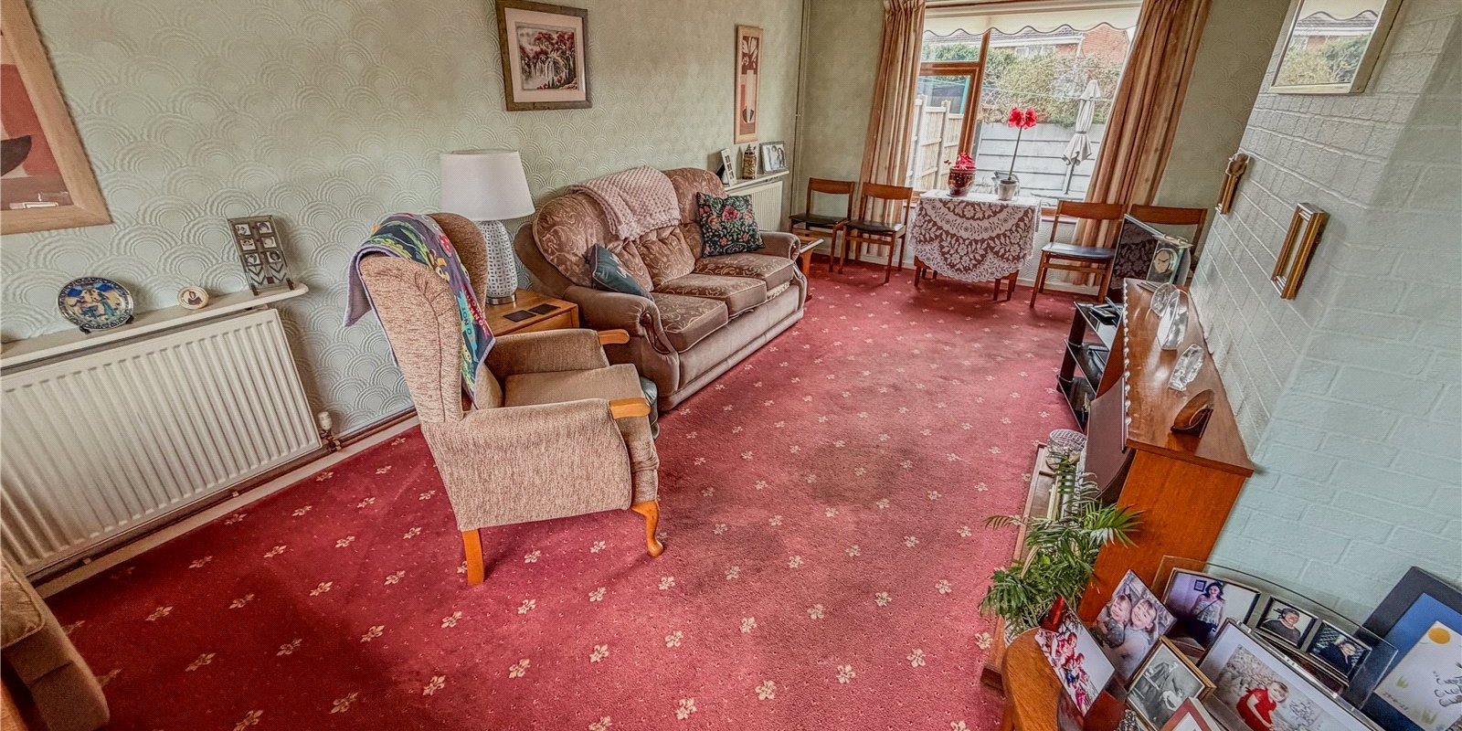 To the rear, the kitchen provides a practical and functional space with plenty of scope for personal touches. It offers direct access to the garden, creating a natural flow between indoor and outdoor areas and making it convenient for day today use. The layout lends itself well to future improvement should a buyer wish to enhance or reconfigure the space over time.