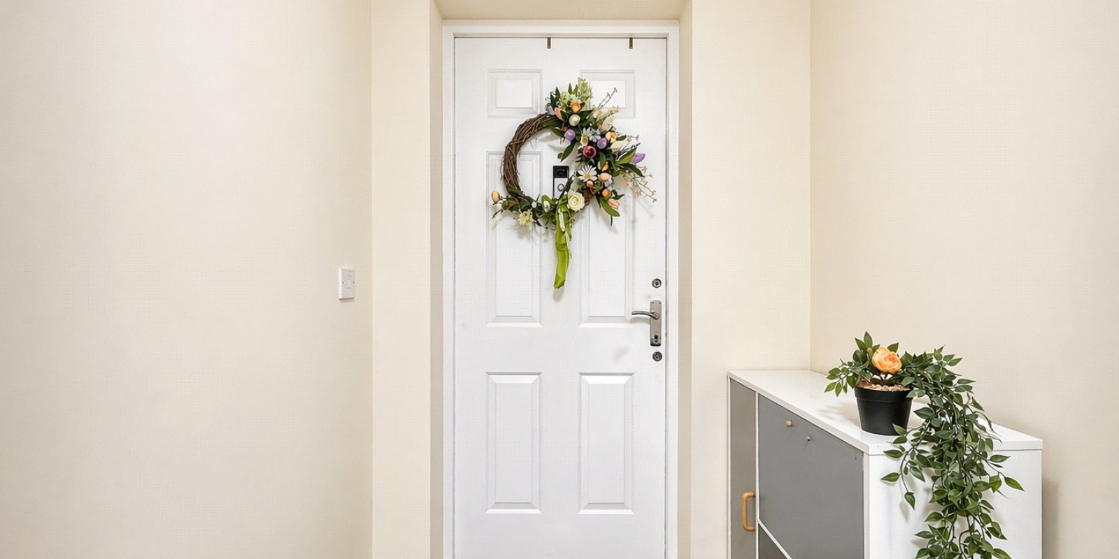 Two double bedrooms provide generous space for relaxation, while a modern three-piece bathroom suite with an overhead shower completes the home. Additional storage is available in a convenient hall cupboard, enhancing the apartment’s functionality.