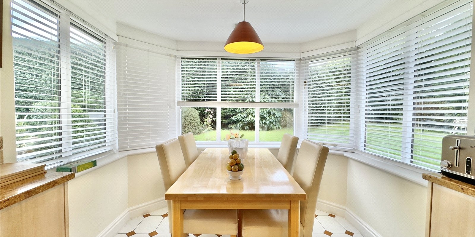The ground floor comprises a welcoming porch leading into a bright dining hallway, with an additional sitting room off the hall and a convenient ground-floor WC. The spacious main sitting room features a newly fitted fireplace and flows into a conservatory, both of which enjoy lovely views over the rear garden. The large kitchen diner is fitted with a wide range of wall and base units, granite worktops, and a charming walk-in bay window, perfect for family dining. A practical utility room off the kitchen provides direct access to the rear decked entertaining area.