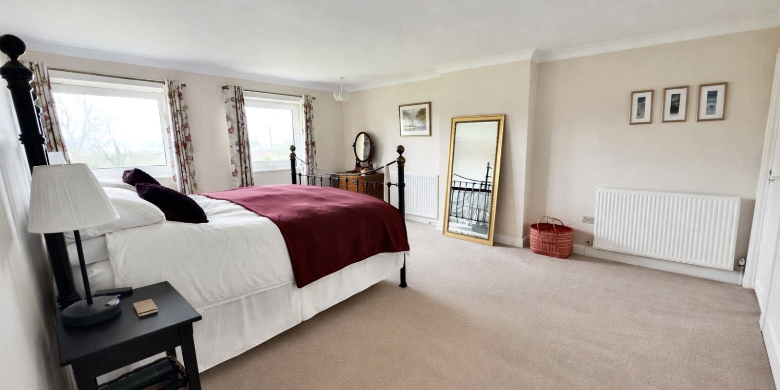 Upstairs, the property continues to impress with five well-proportioned bedrooms. The spacious master bedroom benefits from built-in wardrobes and a private en suite shower room, while the second bedroom also features fitted wardrobes. Three additional bedrooms are served by a stylish four-piece family bathroom. From the first floor, the elevated views across the Dee Estuary and Welsh hills are truly spectacular.