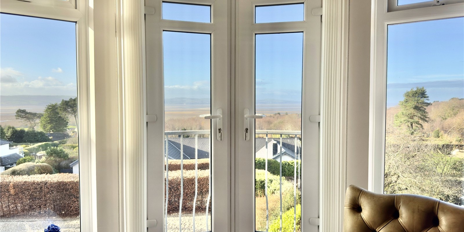 The modern kitchen is fully equipped with high-quality appliances and includes a breakfast bar, providing a practical yet elegant space for everyday use. The standout room of the apartment is the spacious lounge diner, which takes full advantage of the elevated position and offers breathtaking views across the estuary and towards the Welsh hills. A Juliet balcony allows natural light to flood the room, enhancing the sense of space and connection to the surrounding landscape.