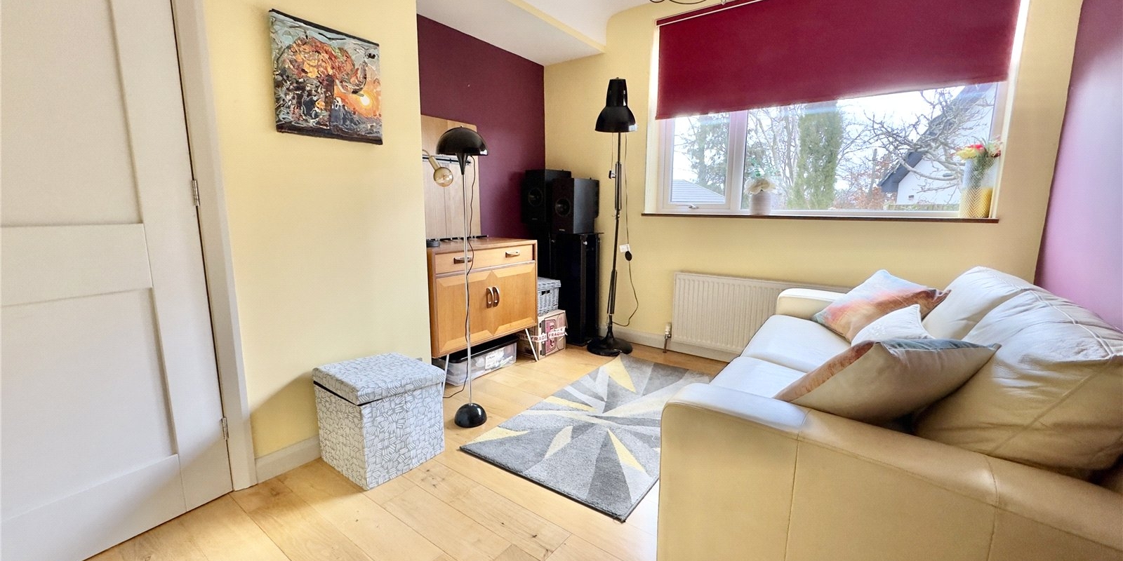 From here you can access the front reception room, a charming and comfortable space featuring a bay window overlooking the front garden and a feature gas fireplace, creating a warm and inviting setting.
