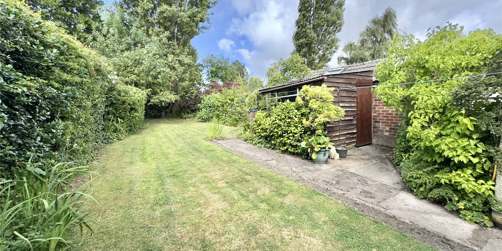 Outside, there is a driveway providing off-road parking, which leads to a detached garage and a workshop which includes a Belfast sink and an outside WC. The front garden is attractively kept, while the large rear garden offers a lovely mix of patio space and a lawn surrounded by mature trees including two apple trees and a pear tree and shrubs, offering both privacy and the perfect setting for outdoor enjoyment.