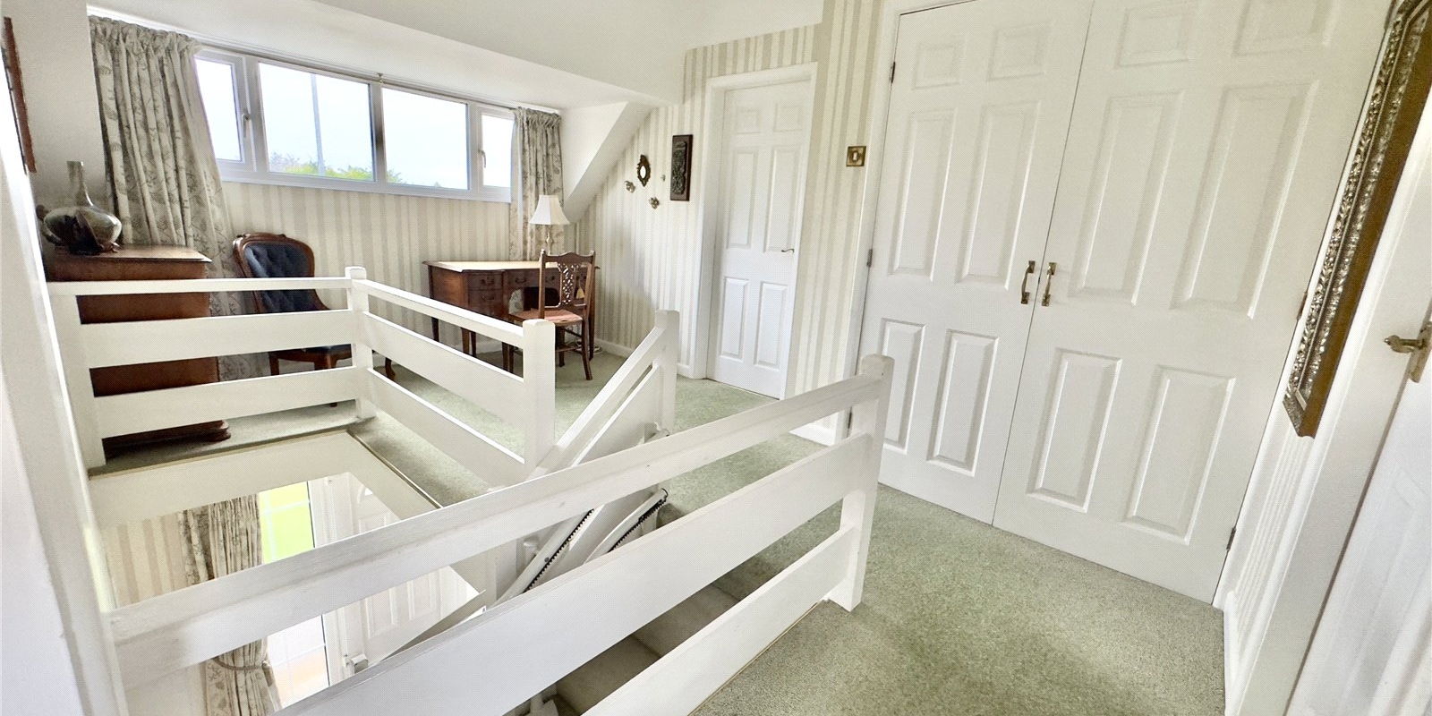On the ground floor, a welcoming entrance hallway leads through to a large, bright lounge with spectacular estuary views. There is a separate dining room which opens into a conservatory, providing a lovely space for entertaining or relaxing. The kitchen is accessed via the dining room and leads through to a utility room, which in turn provides internal access to a garage, a handy workshop, and a downstairs WC.