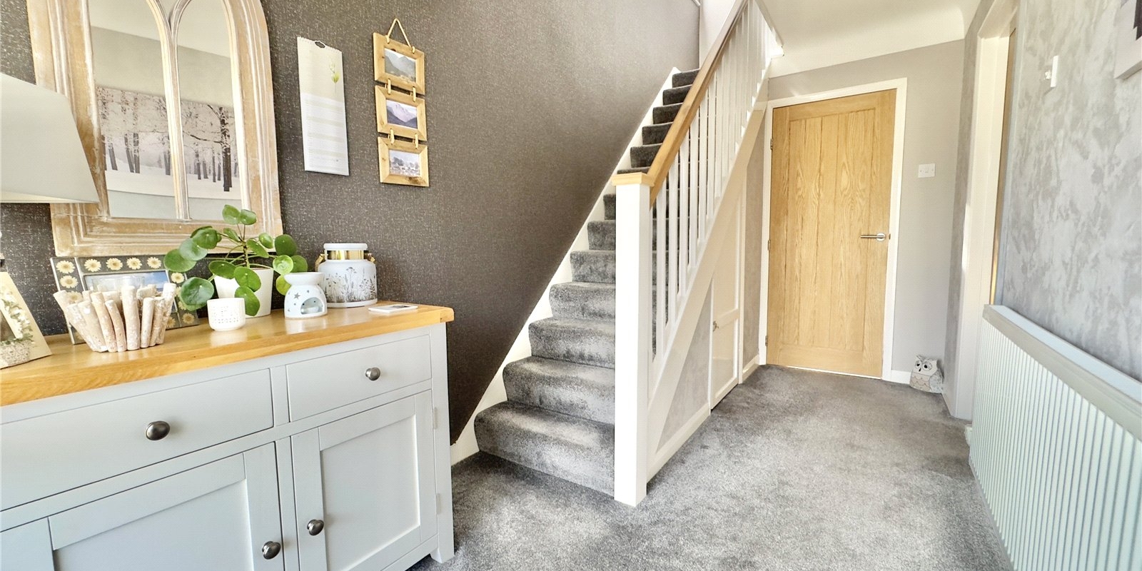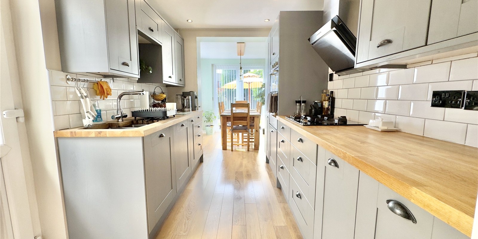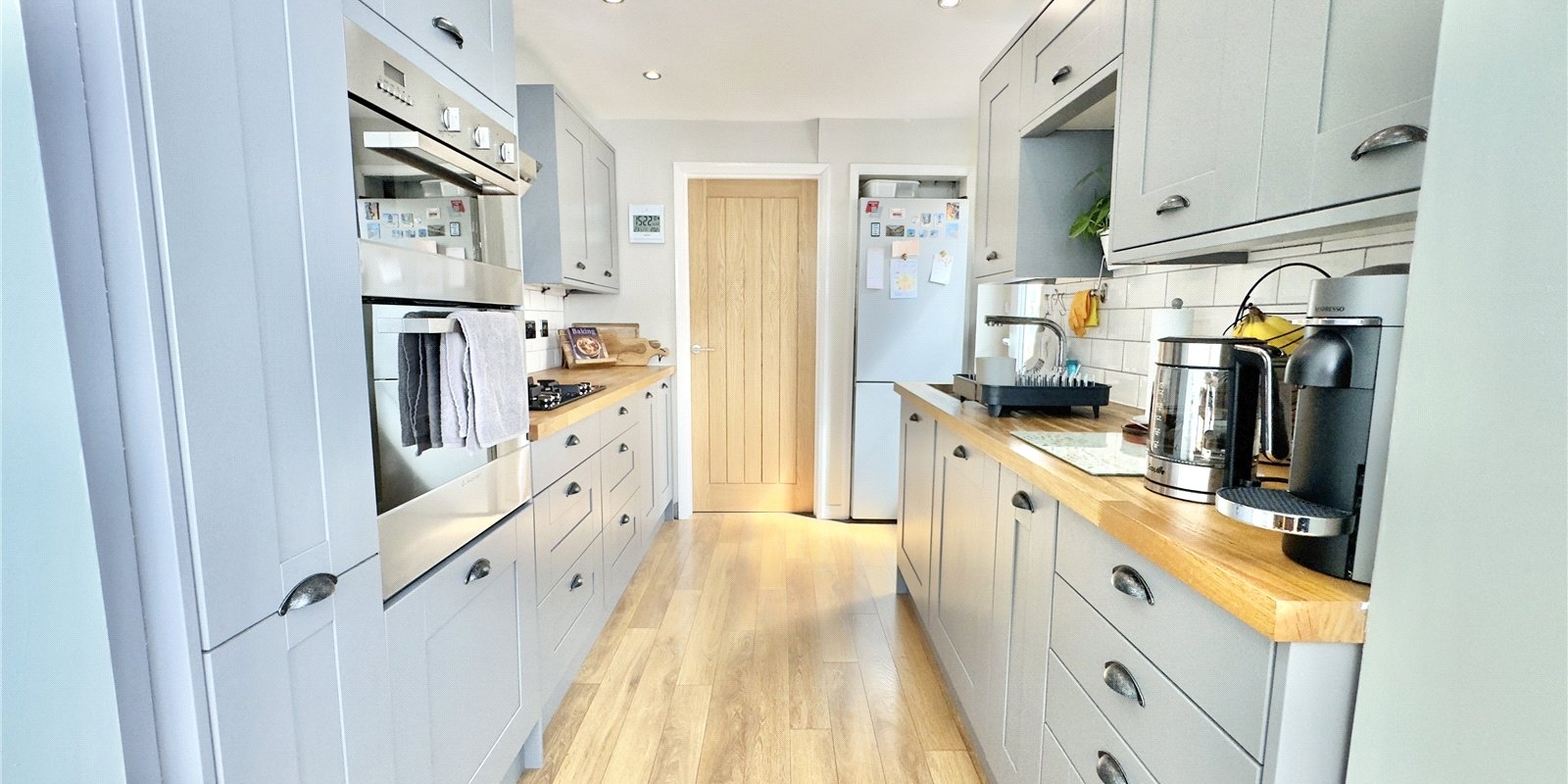 Upstairs, there are two well-proportioned double bedrooms, both with built-in wardrobes, a comfortable single bedroom, and a sleek, modern family bathroom.