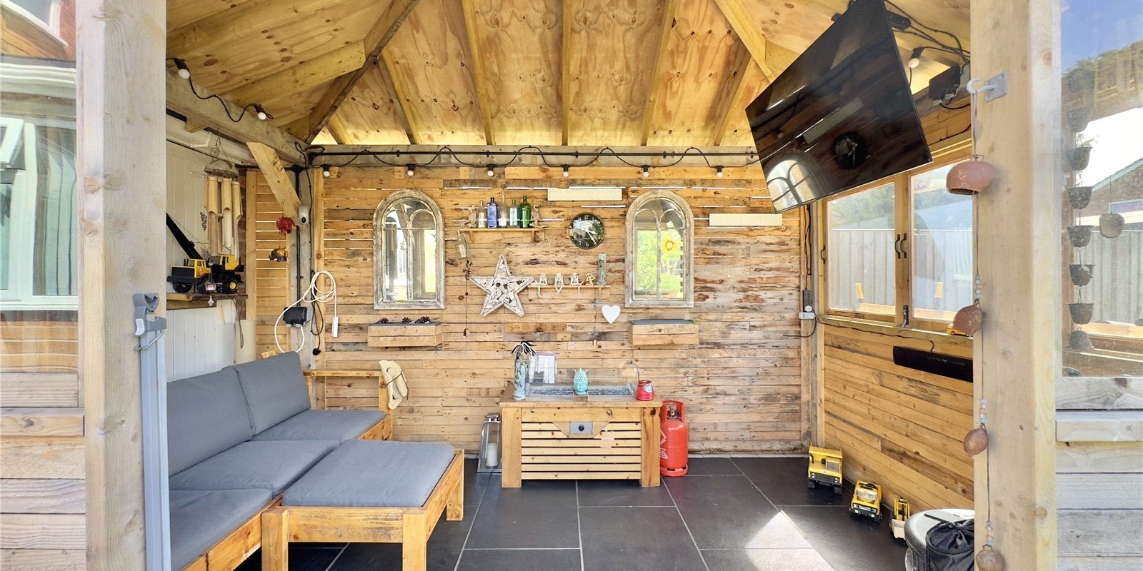 To the front of the property, a large driveway provides parking for multiple vehicles. At the rear, the beautifully landscaped garden enjoys plenty of sunshine and includes a high-quality pergola equipped with power—an ideal space for gatherings, a home office, or a private retreat.