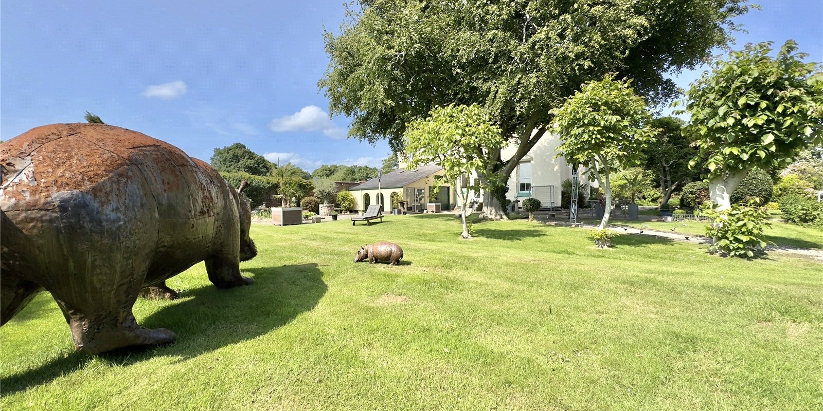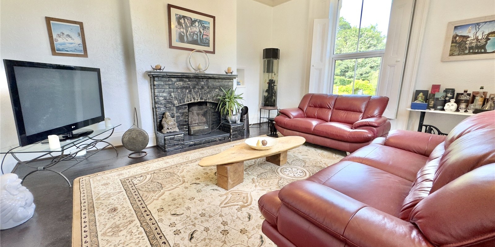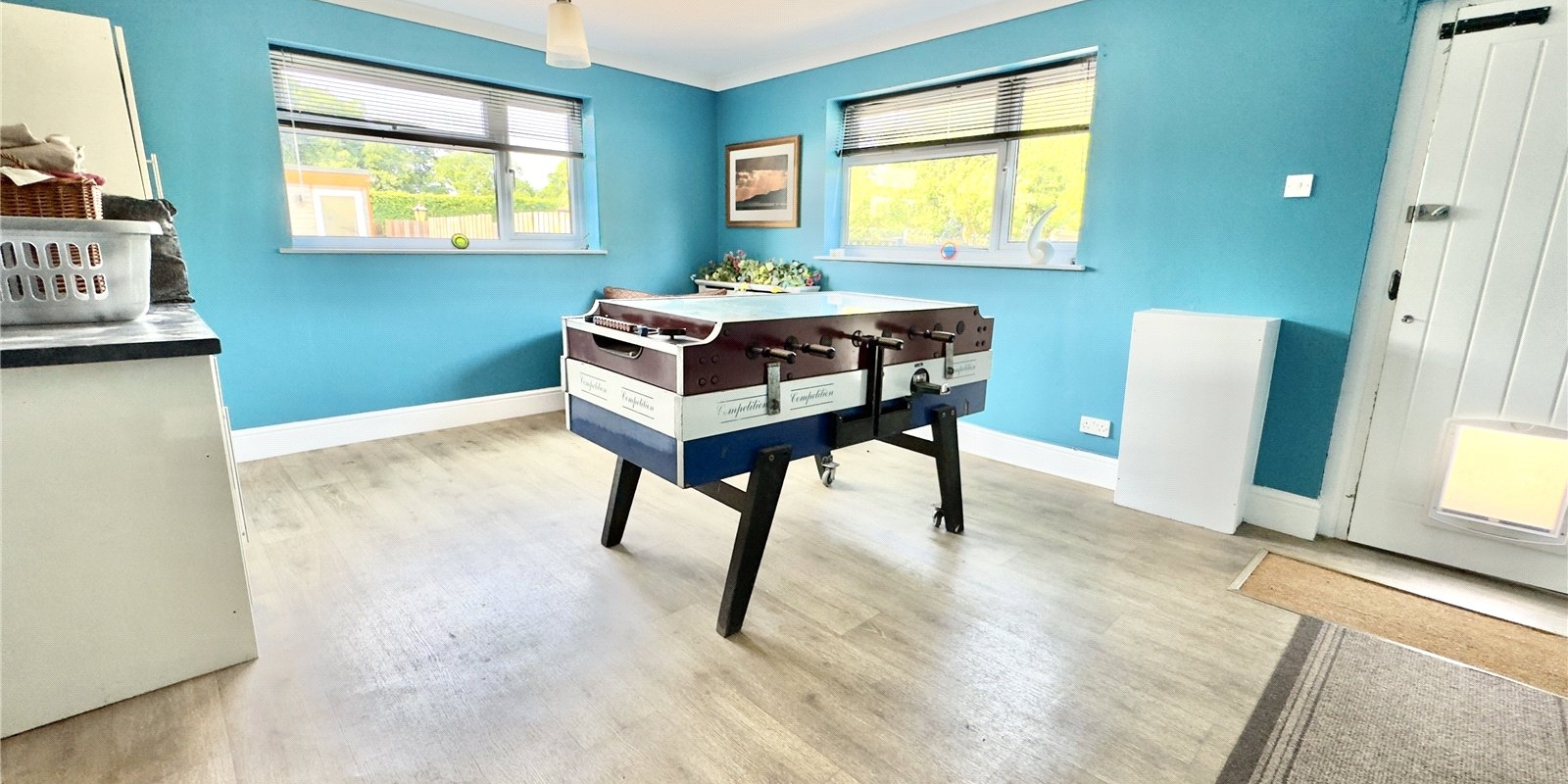 Externally, the property benefits from substantial outbuildings, including one with planning permission for a separate annex—offering exciting potential for multi-generational living, guest accommodation, or even commercial use. The double garage is currently being used as a home gymnasium complete with sauna. The current owners have successfully operated a canine-focused business from the grounds, highlighting the versatility and scope this unique home provides.