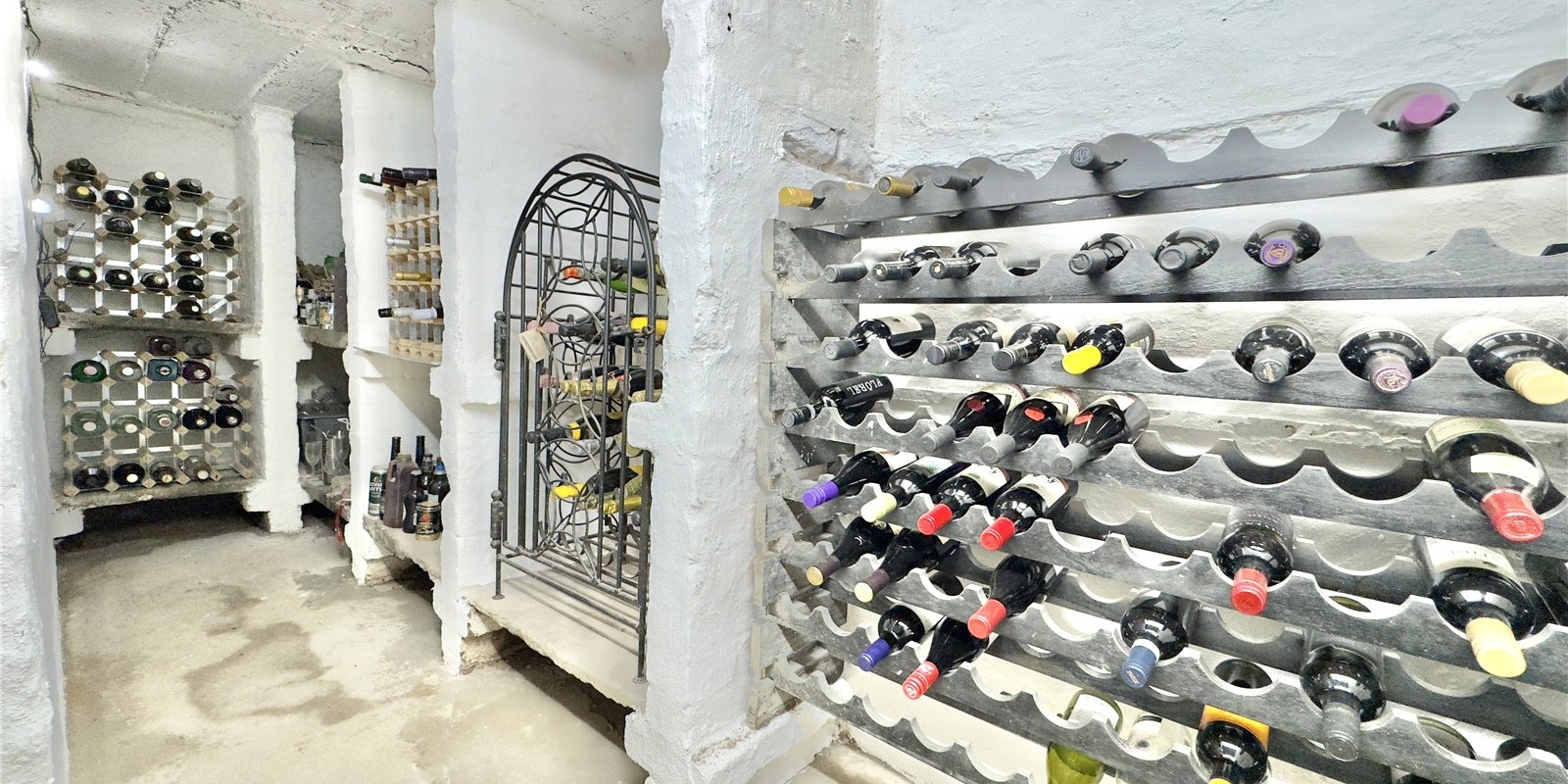 The ground floor presents a wealth of living space with three principal reception rooms, a formal dining room, playroom, and a modern fitted kitchen complemented by a utility room and downstairs WC. A wine cellar and additional storage can be found in the basement.
