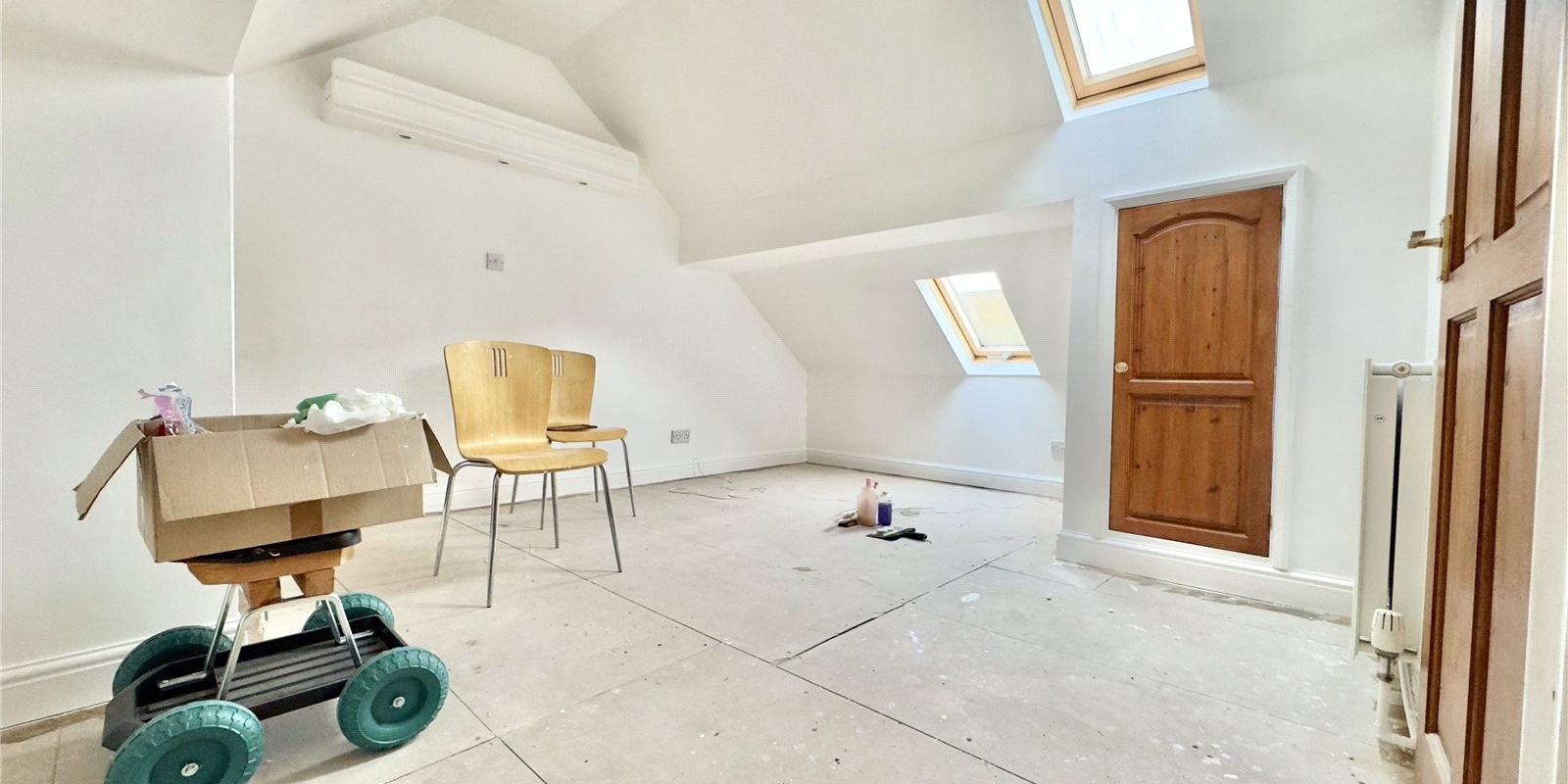 The property features two to three well-proportioned bedrooms, with the main bedroom benefiting from a modern en-suite. There is also a contemporary family bathroom and a convenient downstairs WC.