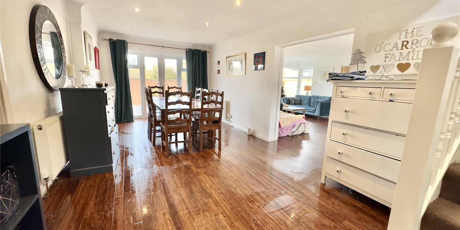 The property features three large reception rooms, providing excellent space for both everyday life and entertaining, along with a separate study that is ideal for home working or quiet use.
