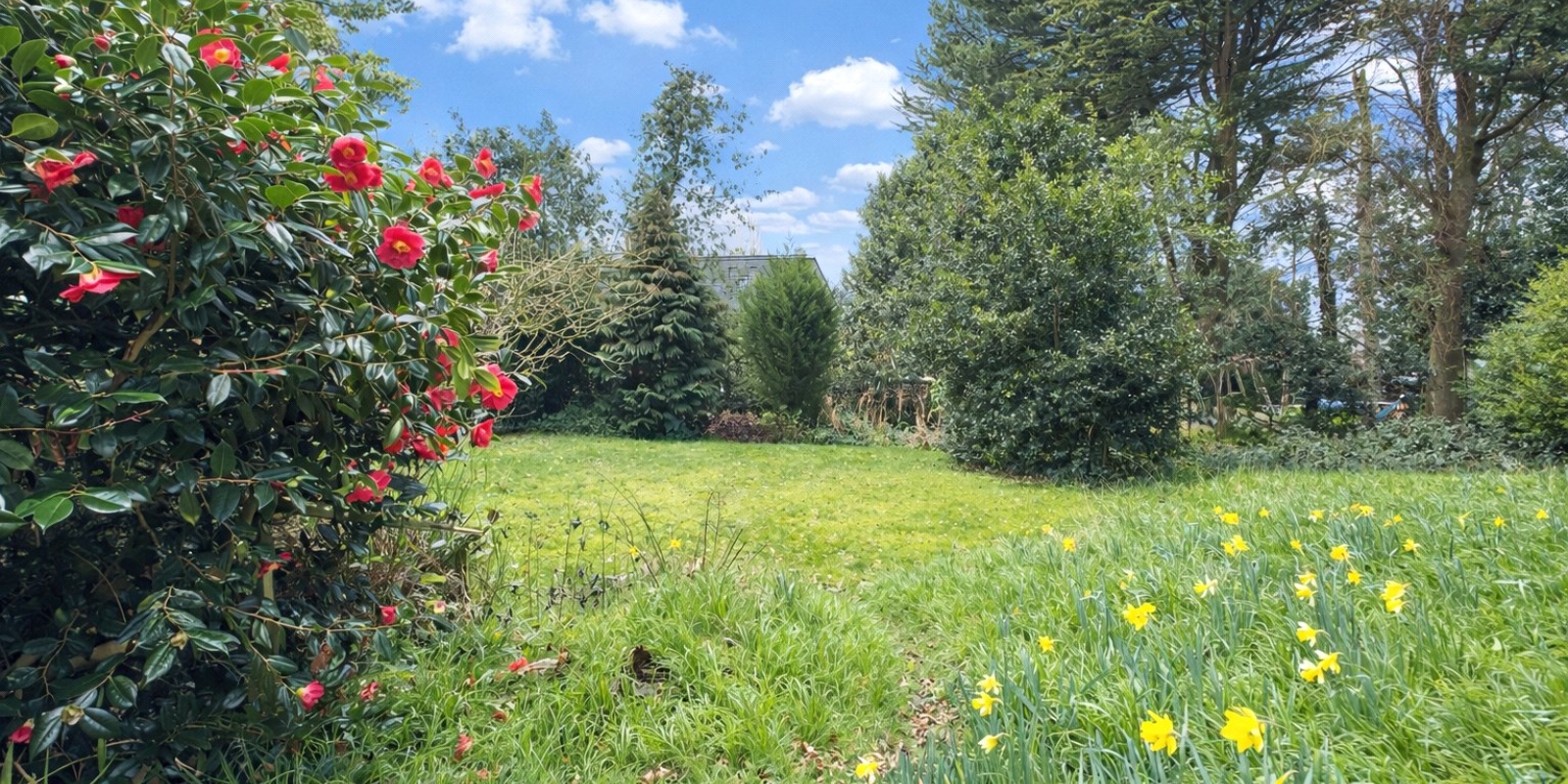 Externally, the property continues to impress. To the front, a gated driveway leads to a double garage, with mature trees and established shrubs creating a sense of privacy and seclusion from the main road. The rear garden is a particular highlight, offering a large and beautifully maintained outdoor space. A patio area provides the perfect spot for outdoor dining or relaxing while taking in the elevated views, while the expansive lawn is bordered by mature planting, adding both character and privacy.