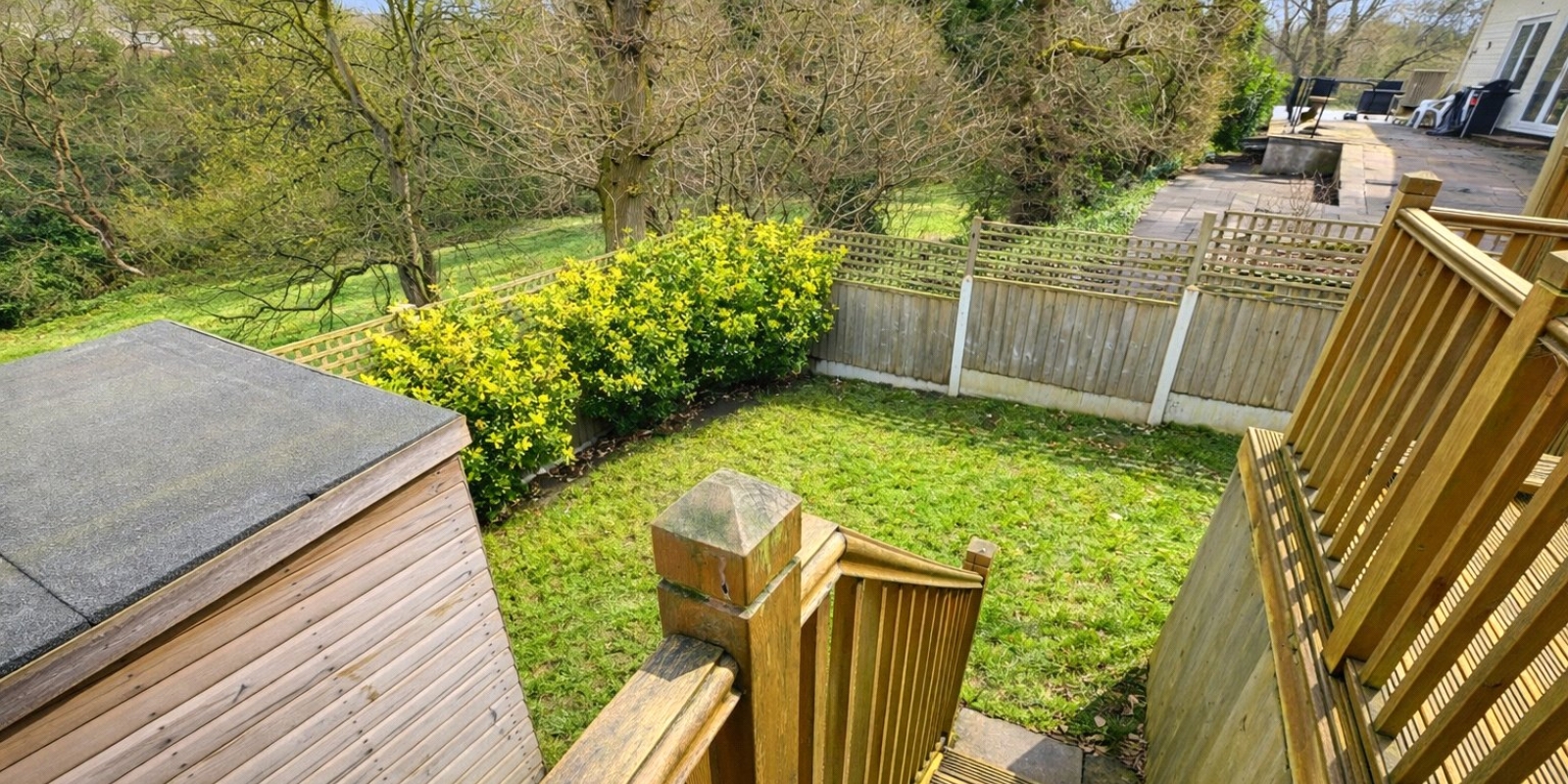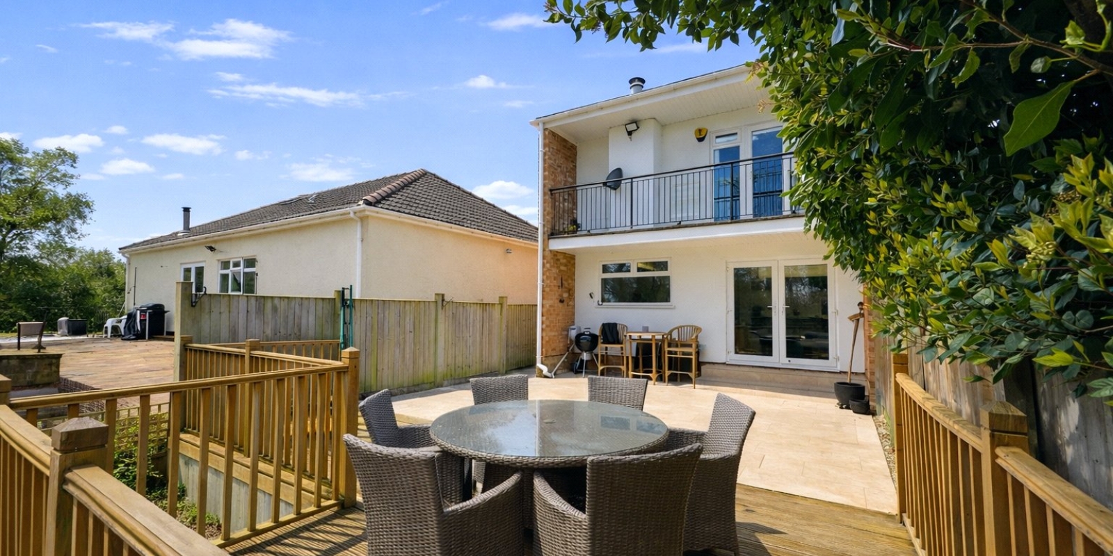 Externally, the home boasts a freshly laid tarmac driveway providing ample off-road parking. The rear garden has been thoughtfully designed over two levels, featuring a patio area leading to a decked seating space, with steps down to a lawned garden that backs directly onto peaceful woodland and farmland, providing a truly private and scenic setting.