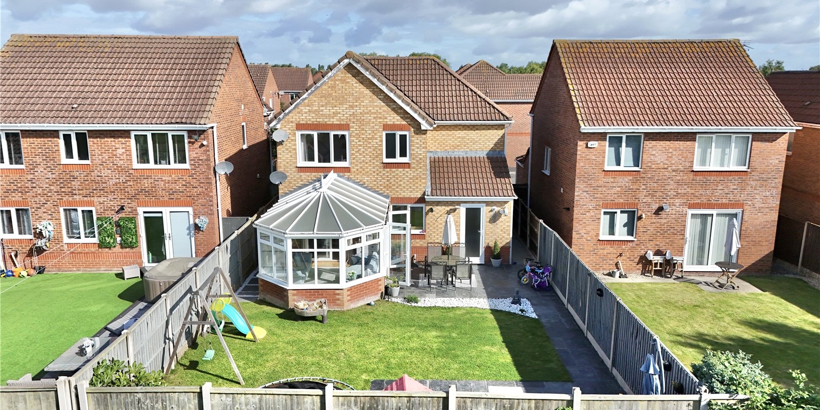 Externally, the house boasts a well-maintained front garden with a tarmac driveway providing off-road parking for multiple vehicles. The rear garden, predominantly laid to lawn with inviting patio areas, ensures privacy and tranquility, making it perfect for outdoor relaxation and entertaining. With an open aspect to the rear, this space is truly delightful, and viewing is highly recommended to fully appreciate the style and charm of this lovely family home.