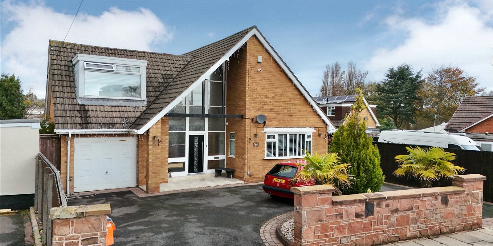The in-and-out driveway provides ample off-road parking for several vehicles and complements the substantial internal garage.