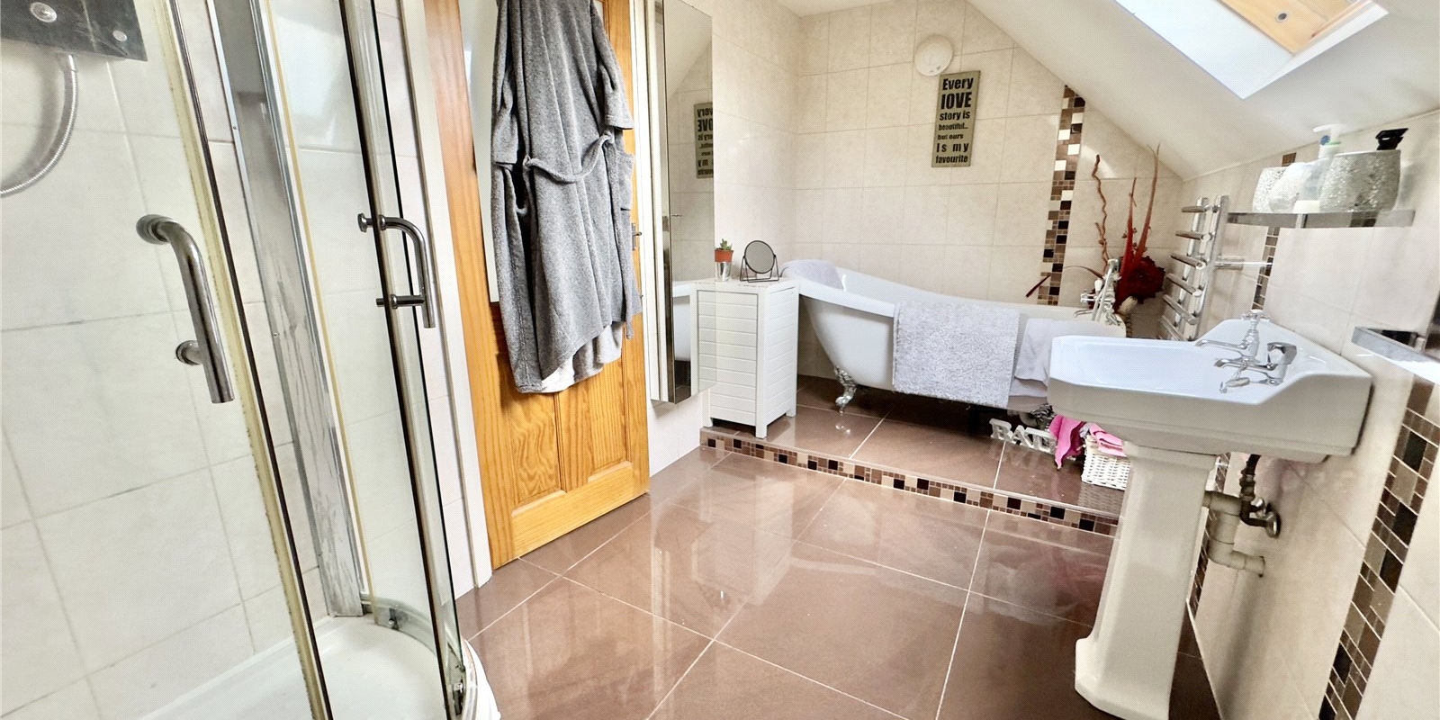 The first floor continues to impress with four well-proportioned bedrooms. The principal bedroom benefits from its own en suite shower room, while the remaining bedrooms are served by a modern family bathroom. Each room offers excellent storage options, with built-in wardrobes and additional eaves storage throughout.