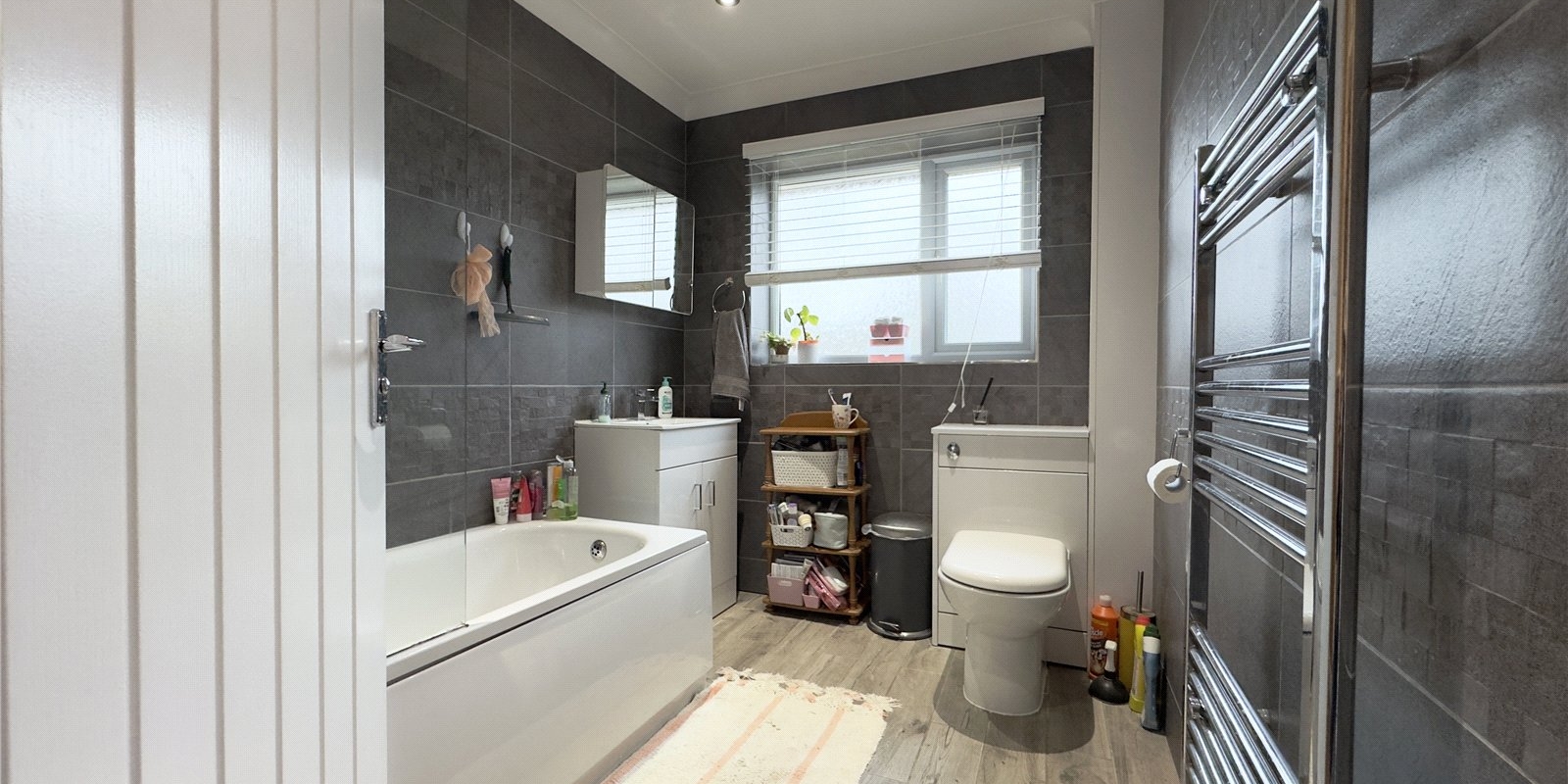 Upstairs, the property offers four well-proportioned bedrooms providing flexible space for growing families, guests or home working. A contemporary family bathroom with bath and shower over completes the first floor. There is also access to a large loft space with ladder and lighting, offering excellent additional storage.
