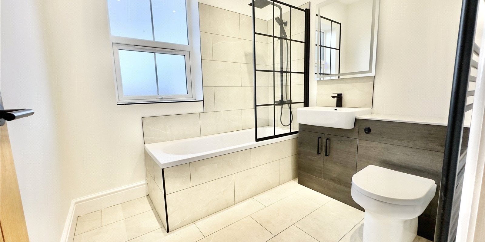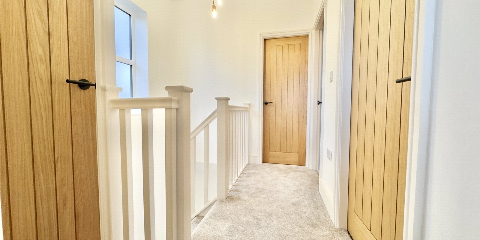 Upstairs, three generously sized bedrooms provide comfortable and well-balanced accommodation. The principal bedroom benefits from its own private ensuite shower room, while the remaining bedrooms are served by a beautifully appointed modern family bathroom, finished with quality fixtures and fittings throughout.