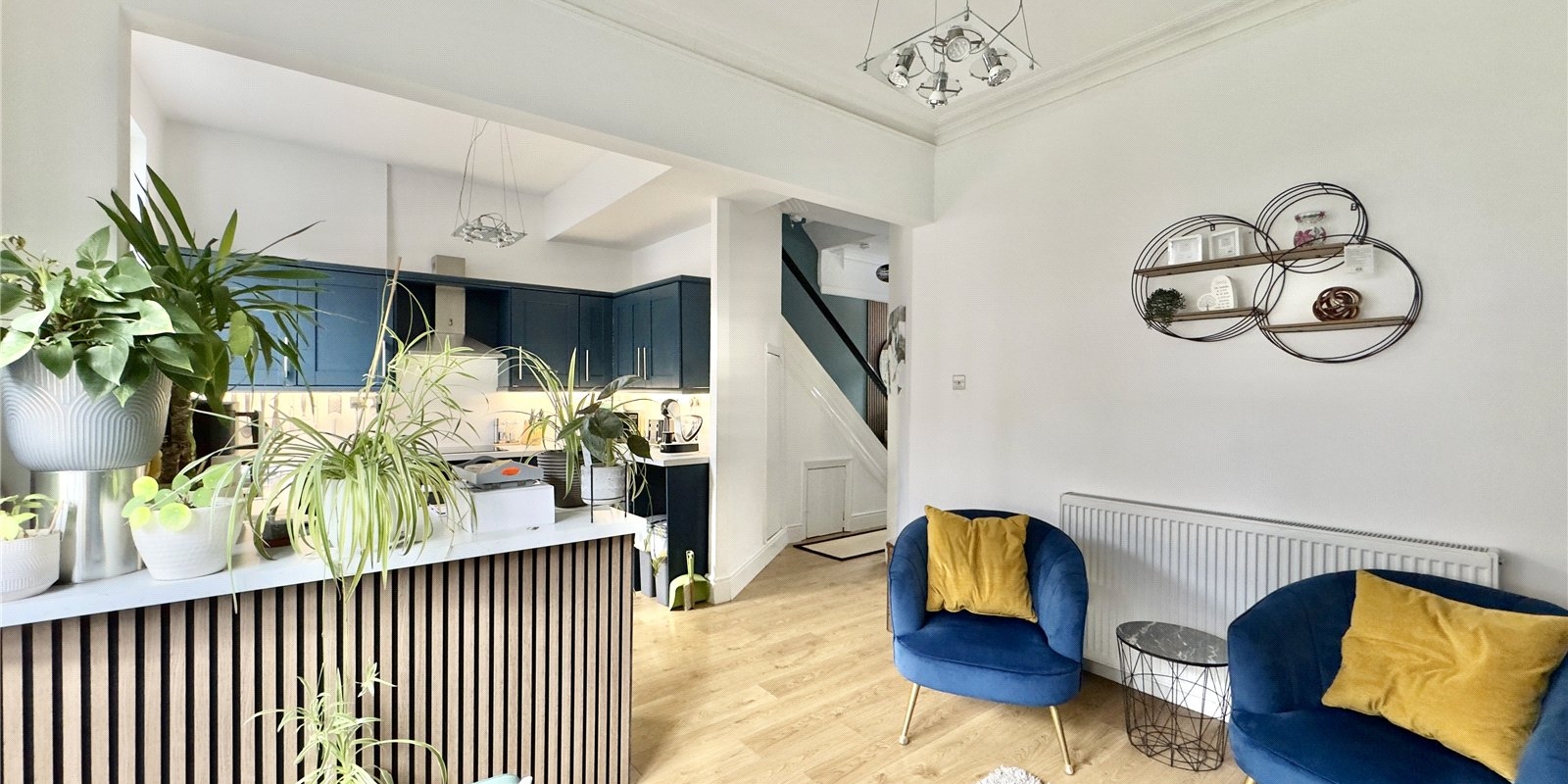 This stunning three-bedroom semi-detached character home perfectly blends timeless charm with a contemporary twist. Entering through the vestibule, you are greeted by geometric tiling and plenty of coat storage, creating a stylish and practical first impression. From the vestibule, a beautiful solid oak front door with stained glass detailing opens into the hallway, which features laminate flooring throughout and feature paneling just before the stairs, providing an ideal spot to hang a mirror and add a touch of personality.