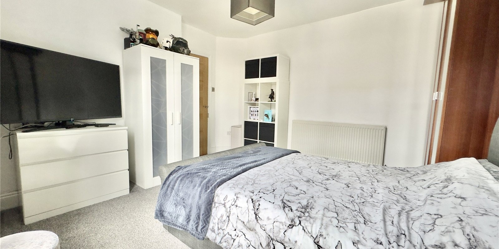 Upstairs, the property offers three beautifully decorated bedrooms. The third bedroom is currently used as a dressing room but offers ample space to function as a comfortable bedroom, nursery or home office.