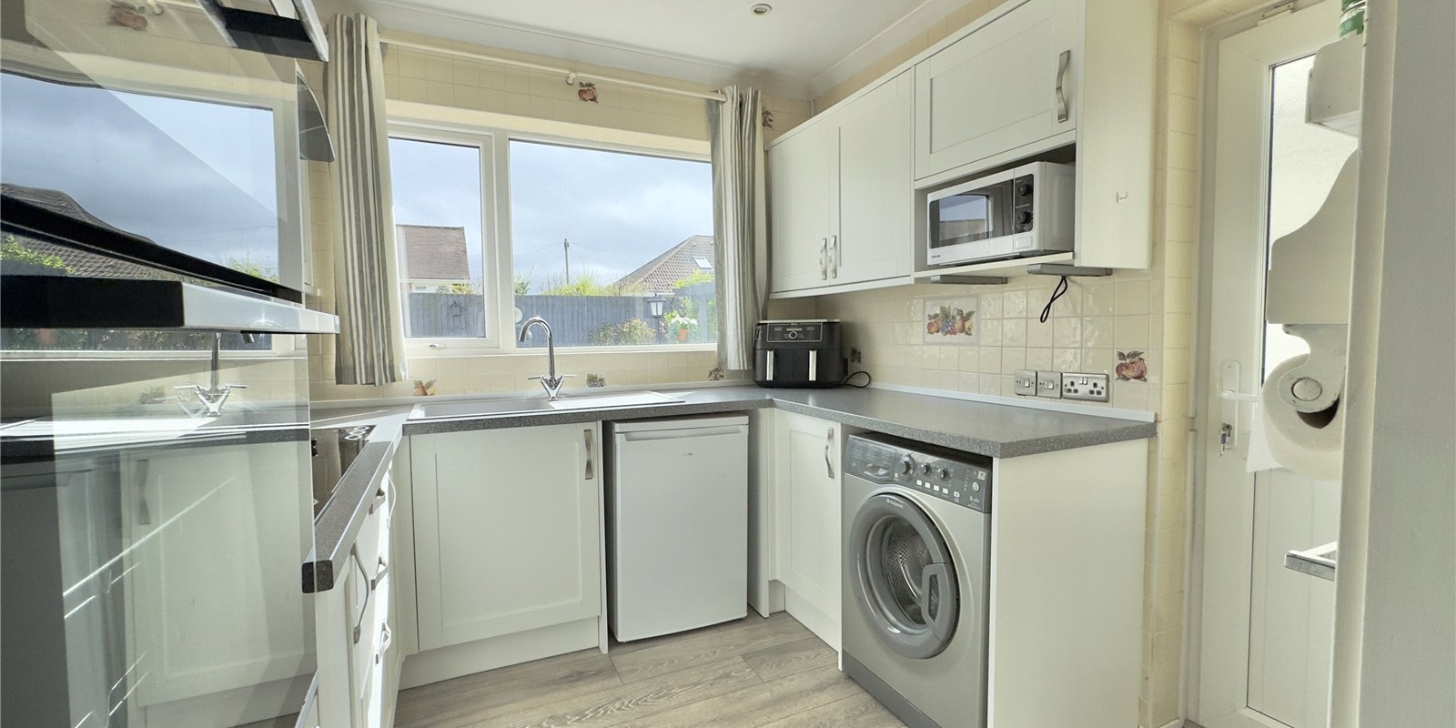 The well-proportioned accommodation briefly comprises a welcoming vestibule leading into an inviting entrance hall. The cosy yet elegant lounge, filled with natural light, provides a perfect space for relaxation and seamlessly connects to a separate dining room, which enjoys direct access to the garden, ideal for entertaining and al fresco dining. Adjacent is the modern shaker-style kitchen, fitted with contemporary units and designed to complement modern living. Modern laminate flooring flows through the hallway, dining area, and kitchen, adding a sleek, practical finish while enhancing the light, airy feel of the space.