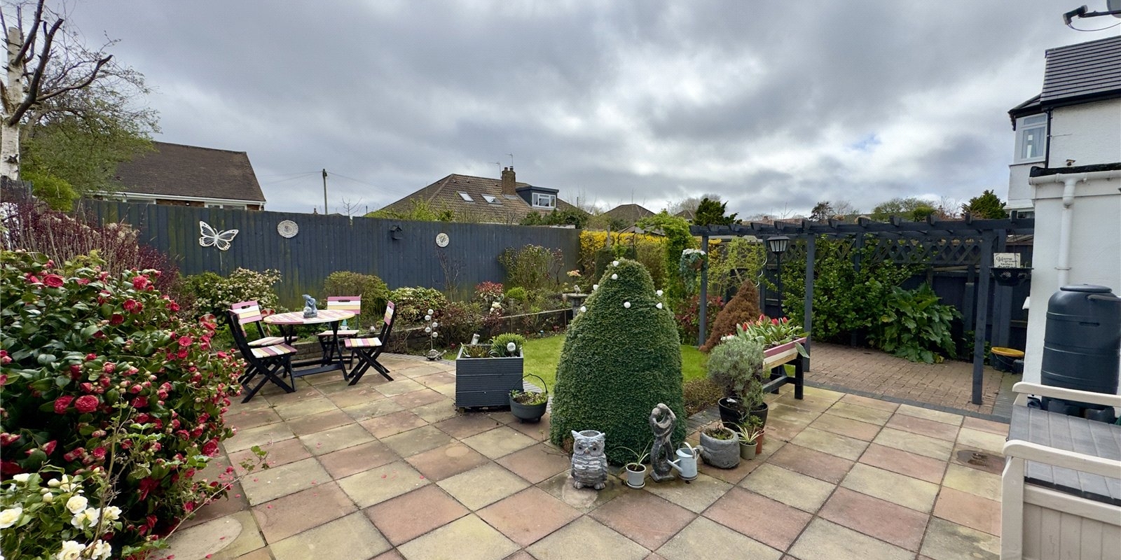 Externally, the property continues to impress. To the rear, there is a private, enclosed, south-facing garden featuring a charming veranda, a paved patio area, and a well-maintained lawn, perfect for outdoor dining, relaxing, or play. A gated side passageway alongside the garage provides additional access and convenience, leading to the driveway and detached garage.