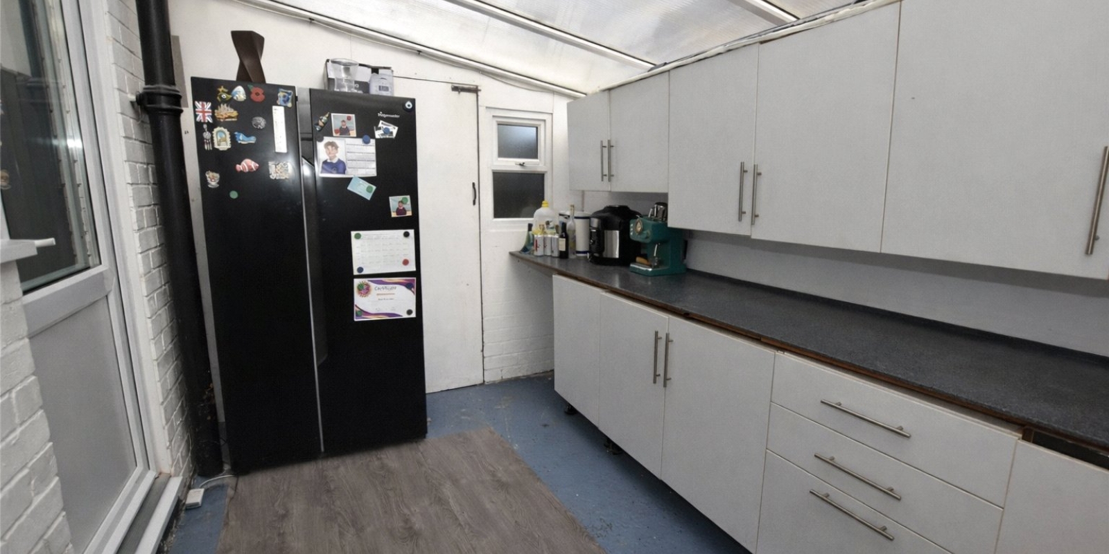 The kitchen is both practical and well-appointed, offering generous workspace and storage, while the addition of a separate utility room and outhouse ensures functionality without compromising on style.