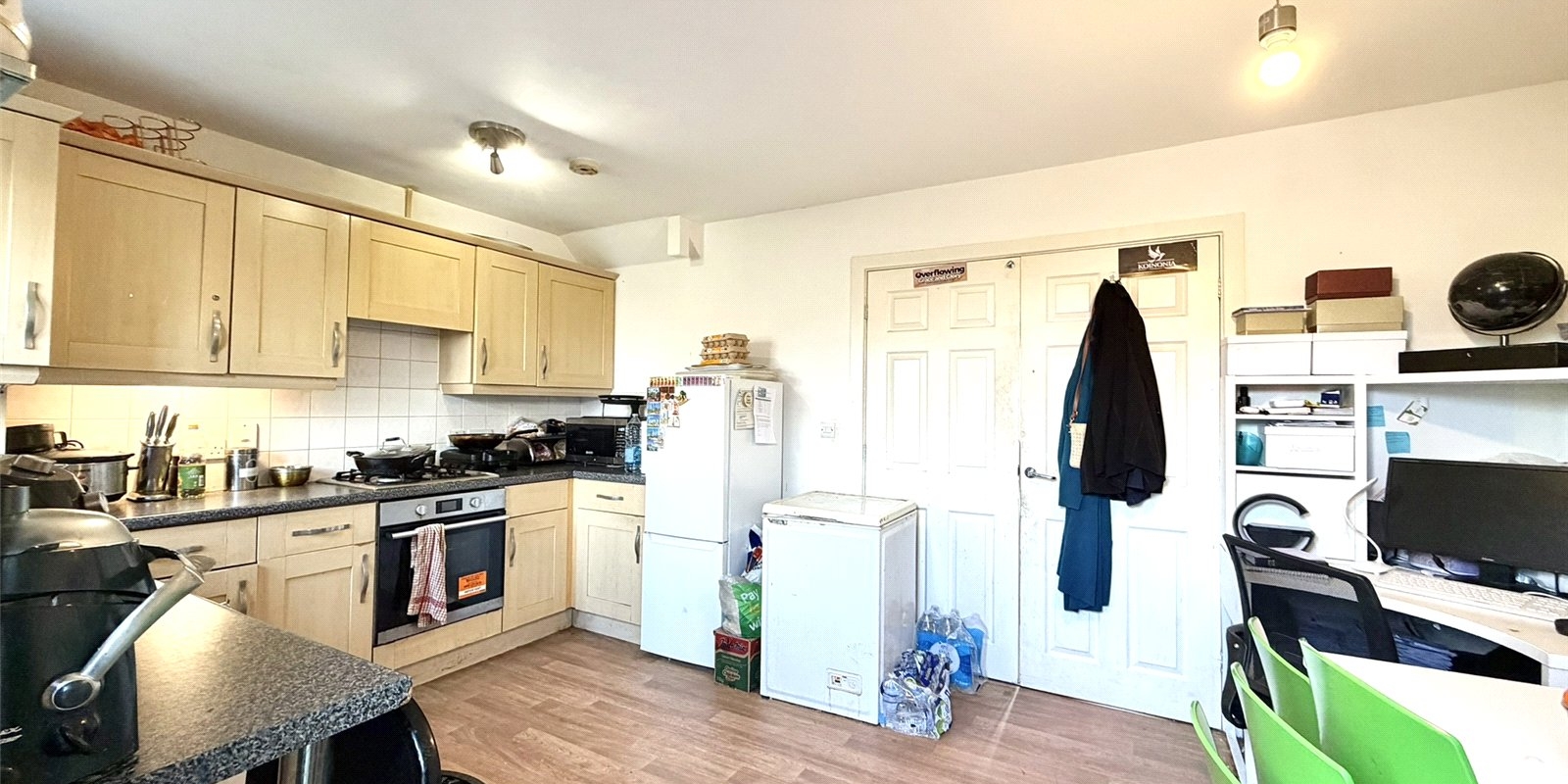 The accommodation is thoughtfully arranged and ready for immediate occupation, with the added advantage of being sold with no onward chain. Upon entering, a welcoming entrance hallway leads to a convenient downstairs WC and a comfortable lounge, ideal for relaxing or entertaining. To the rear, the kitchen dining room provides a bright and practical space overlooking the enclosed garden — perfect for family life and summer gatherings.